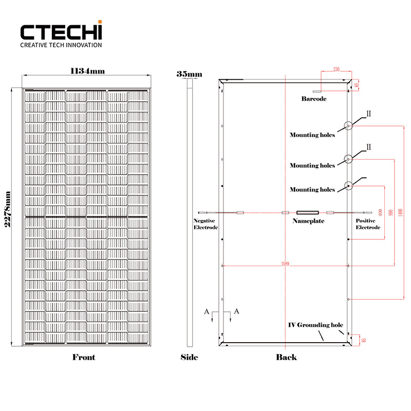 光電パネルの電力 1650-6000W
