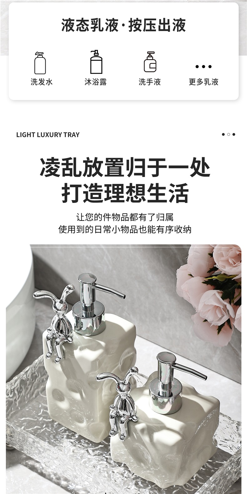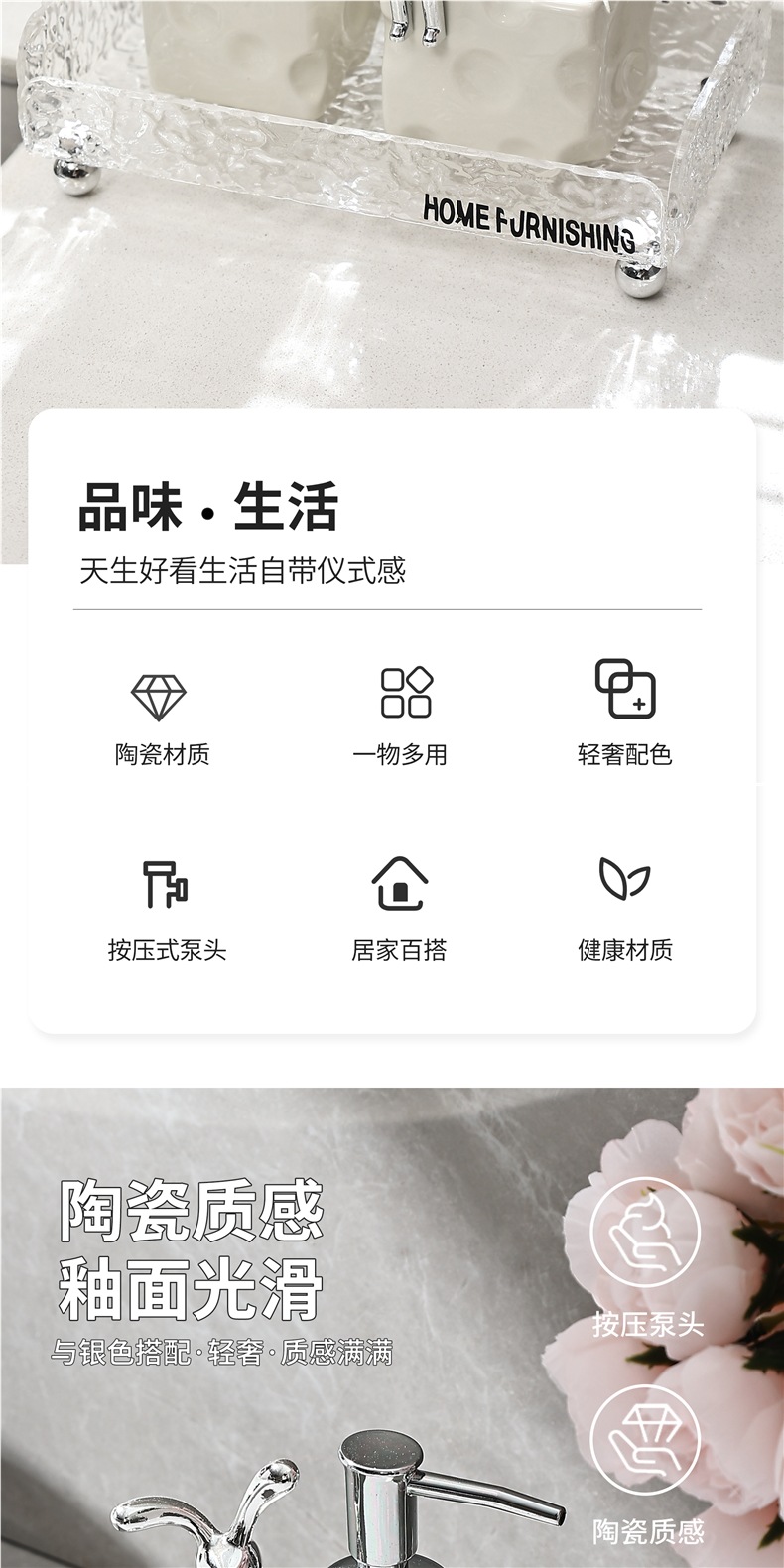 轻奢陶瓷洗手液瓶子卫生间酒店网红沐浴露空瓶分装瓶按压瓶乳液瓶