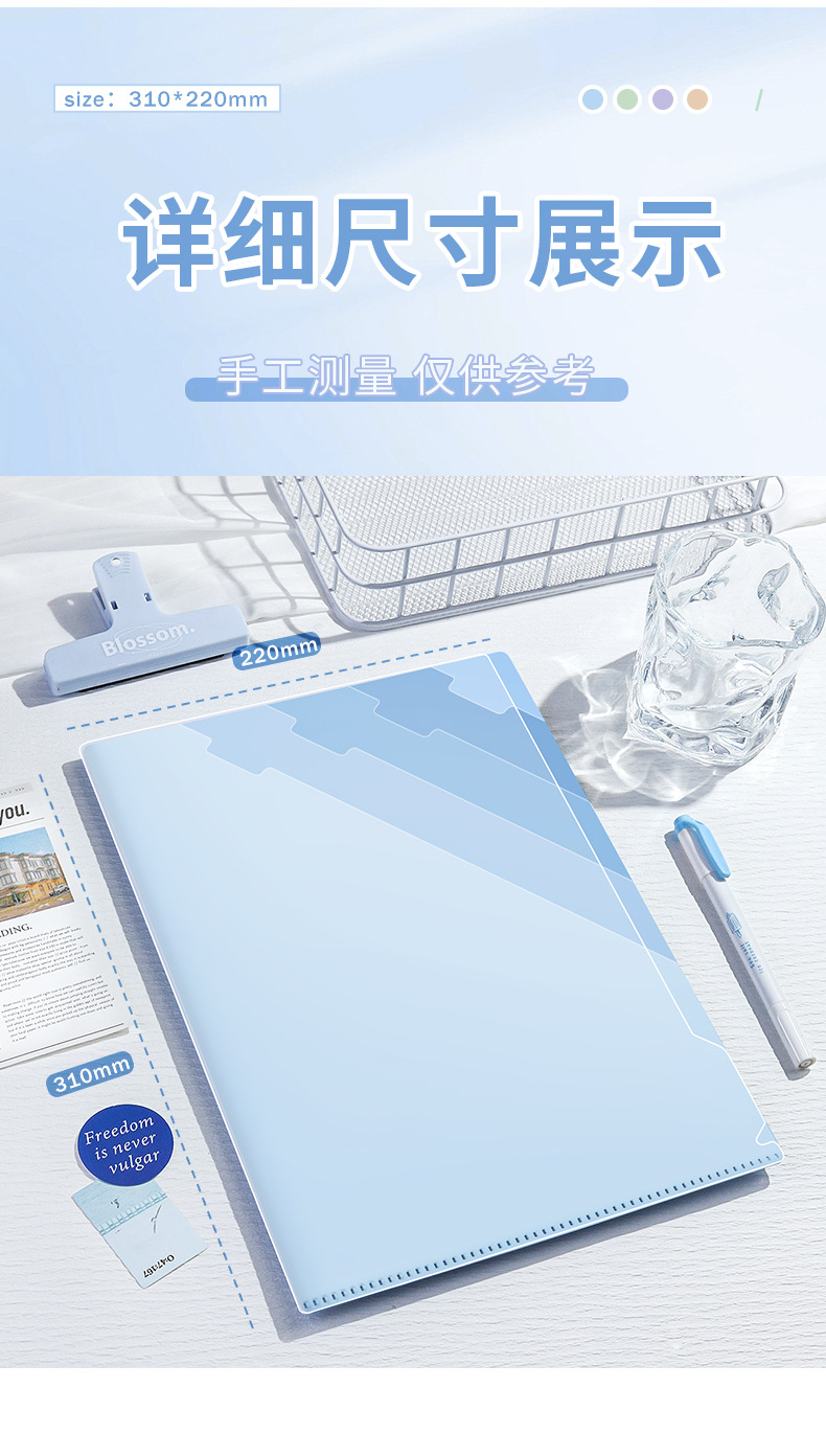 A4グラデーションカラー回転側ボタンファイル振り子クリップ学生試巻事務契約琴譜カラー収納クリップ