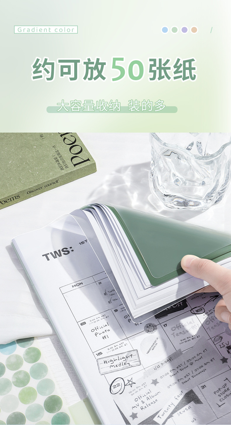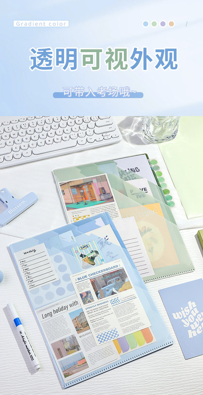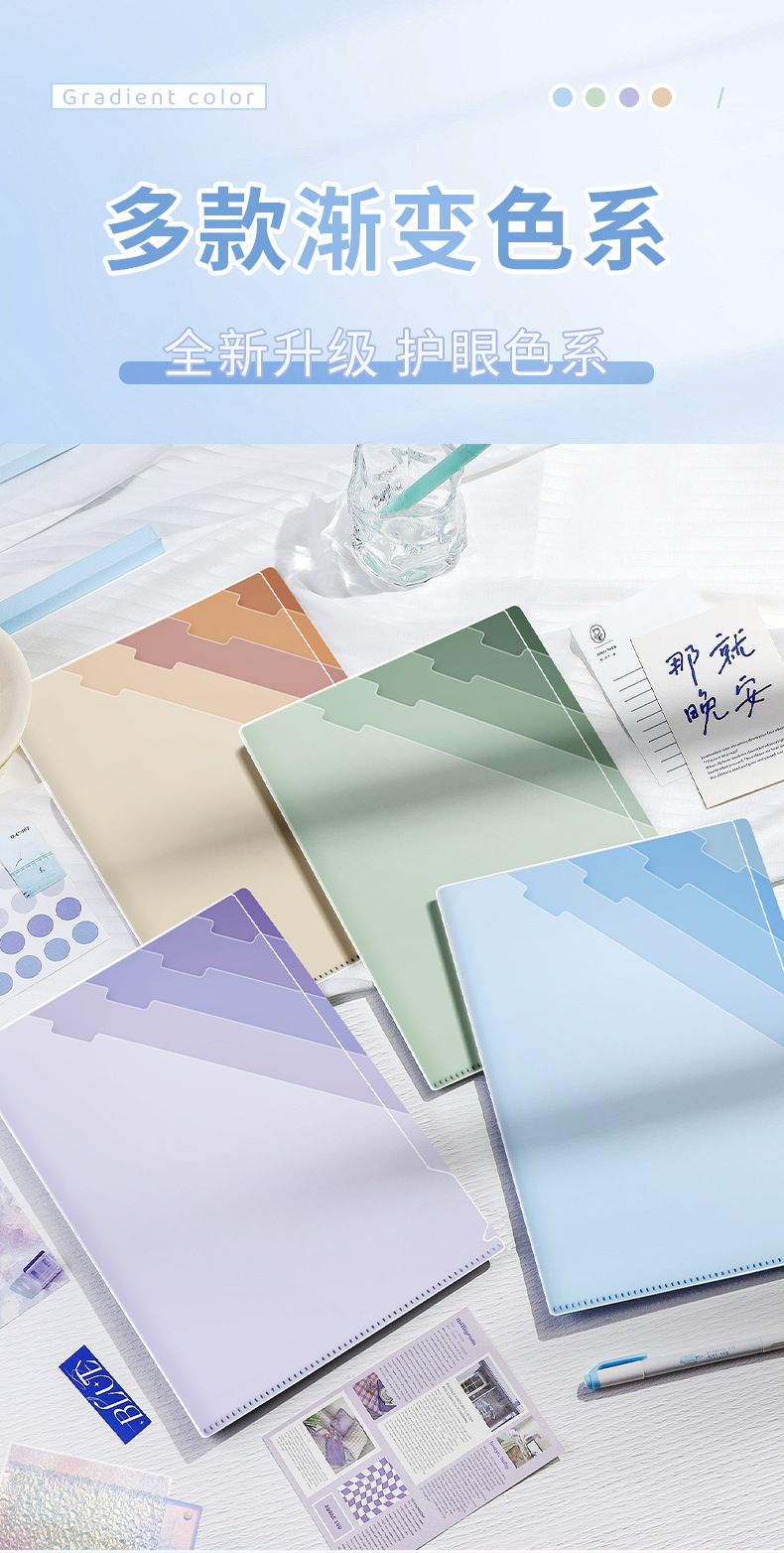L型A4渐变多层高颜值文件夹ins学生试卷资料档案收纳防水便携加厚