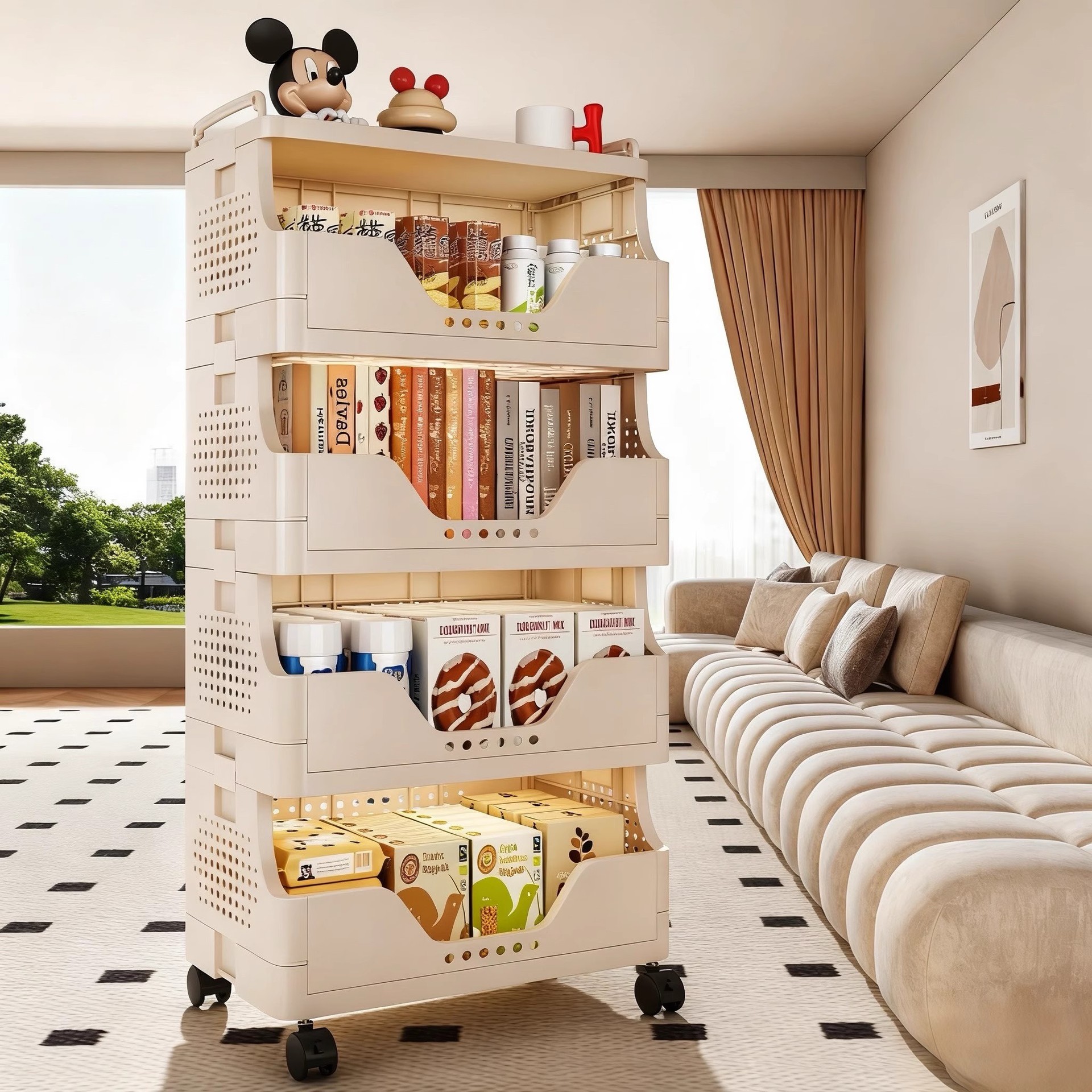 零食置物架落地小推车收纳架多层家用客厅玩具架整理架储物架带轮