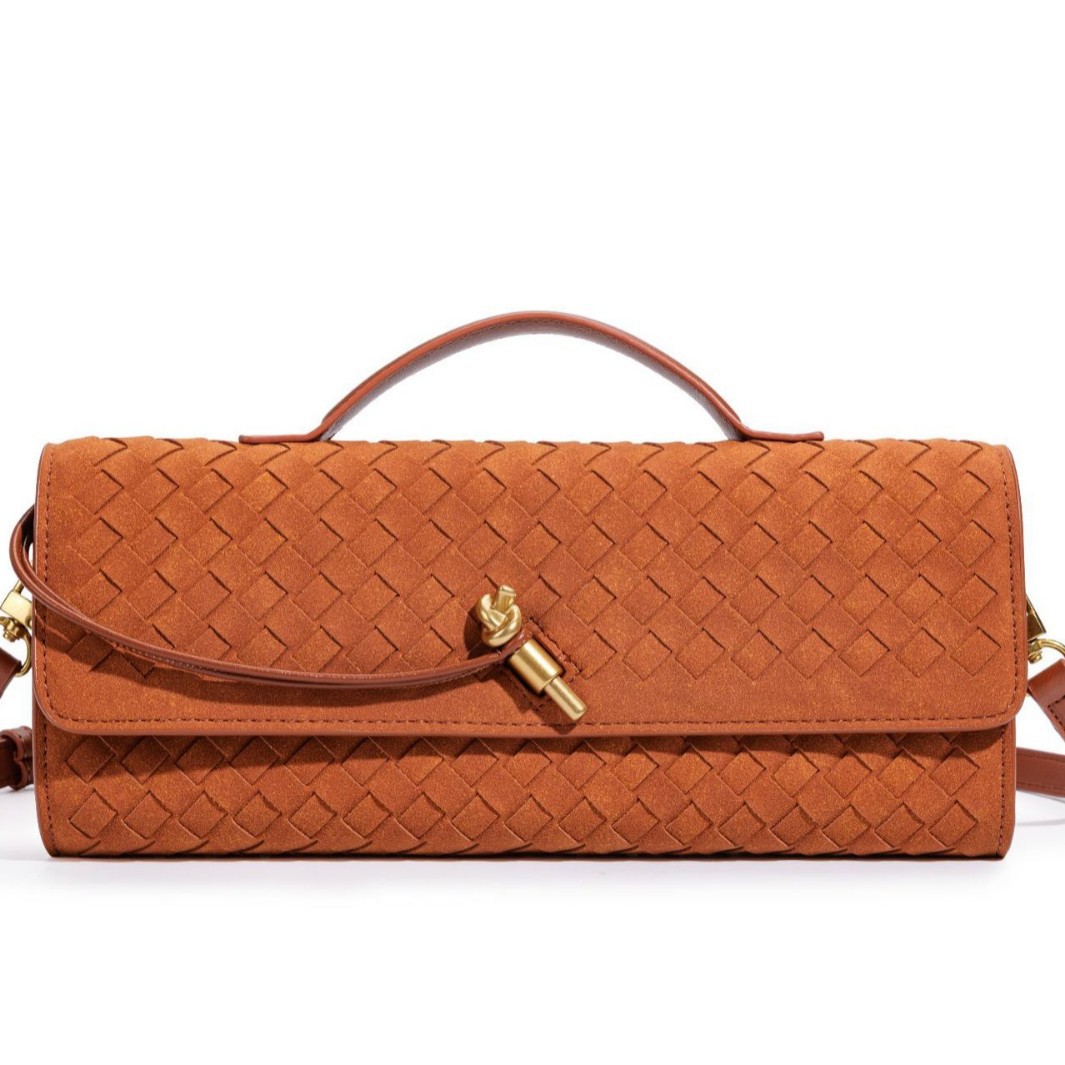 2025新款手工编织牛皮晚宴包时尚手拿包精致百搭手提包斜挎法棍包