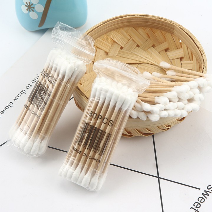 綿棒二重袋入り使い捨て綿棒化粧用綿棒耳抜き家庭用先端竹棒綿球