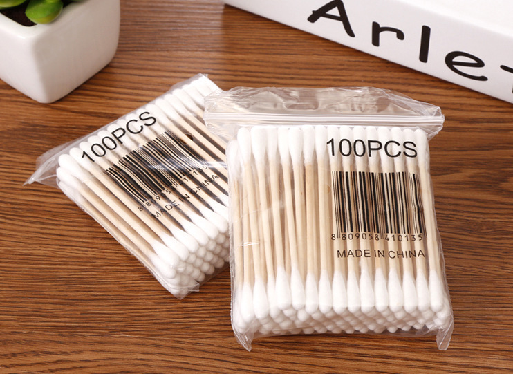 100本入り両頭綿棒、使い捨てメイク落とし綿棒、袋入り耳かき綿棒