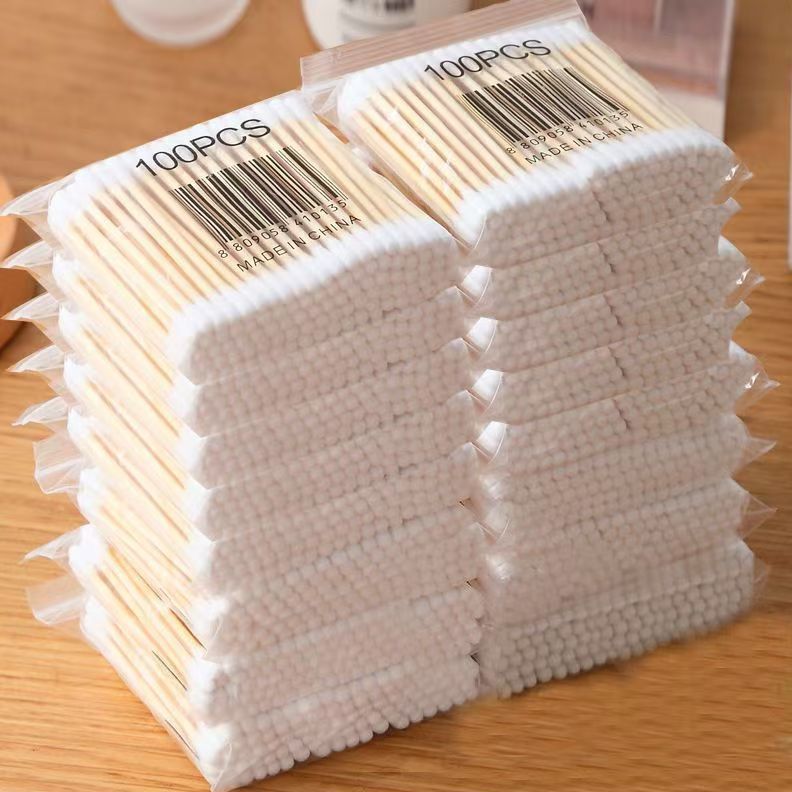 綿棒100本入り 竹棒 小頭 使い捨て 両頭 家庭用綿棒 洗顔 耳かき メイク落とし 綿棒 送料無料