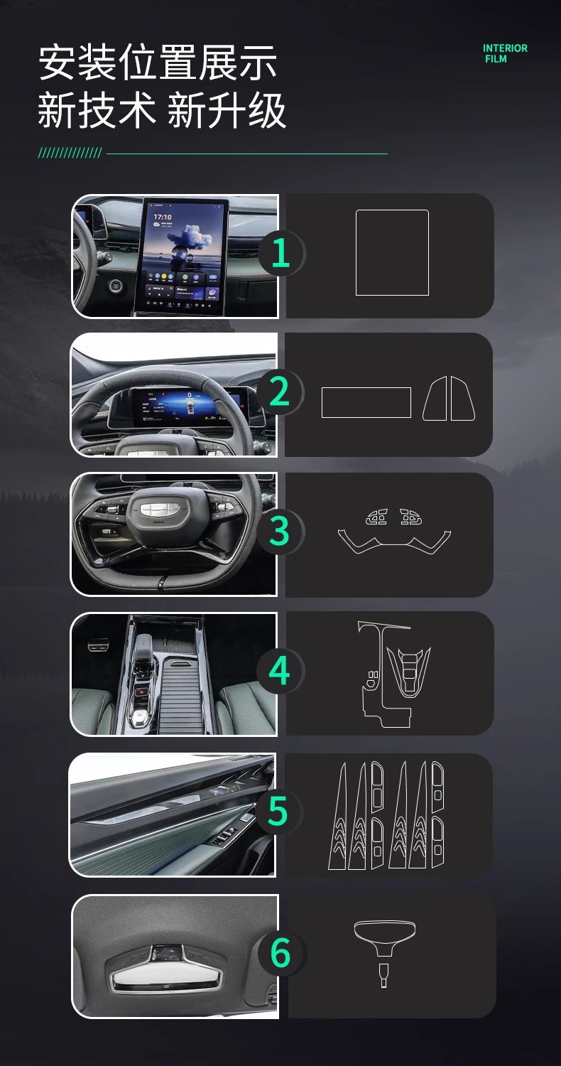 吉利博岳専用セントラルコントロールフィルム、スクリーン強化フィルム、内装保護フィルム、アクセサリー、消耗品24点、23COOL