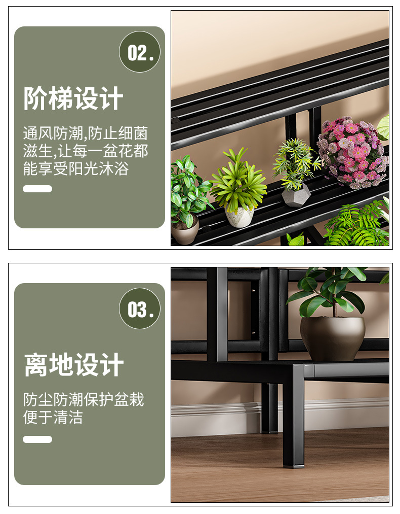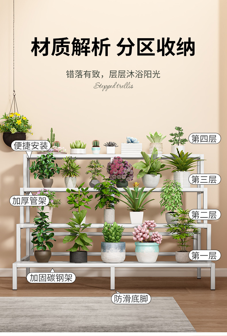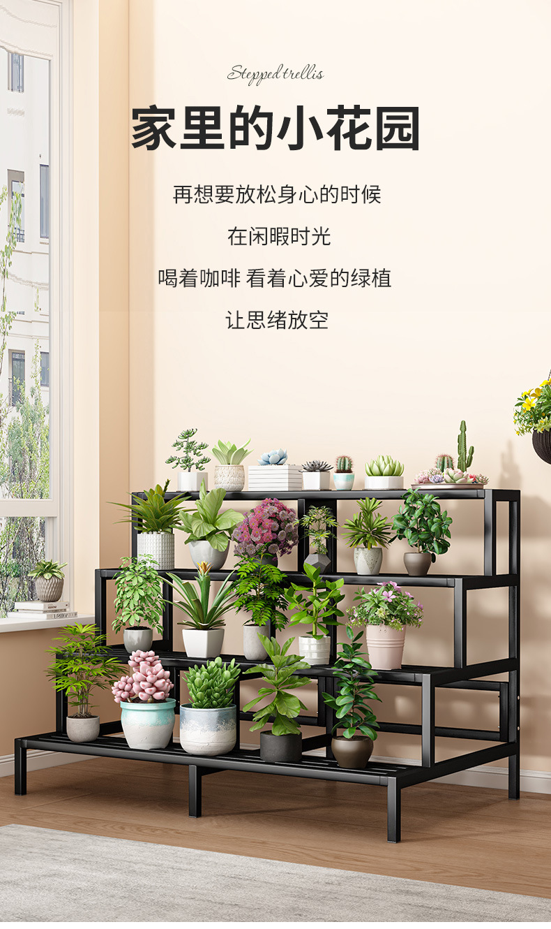 新款室内花架置物架阳台花架子客厅落地式多层阶梯花架多肉花盆架