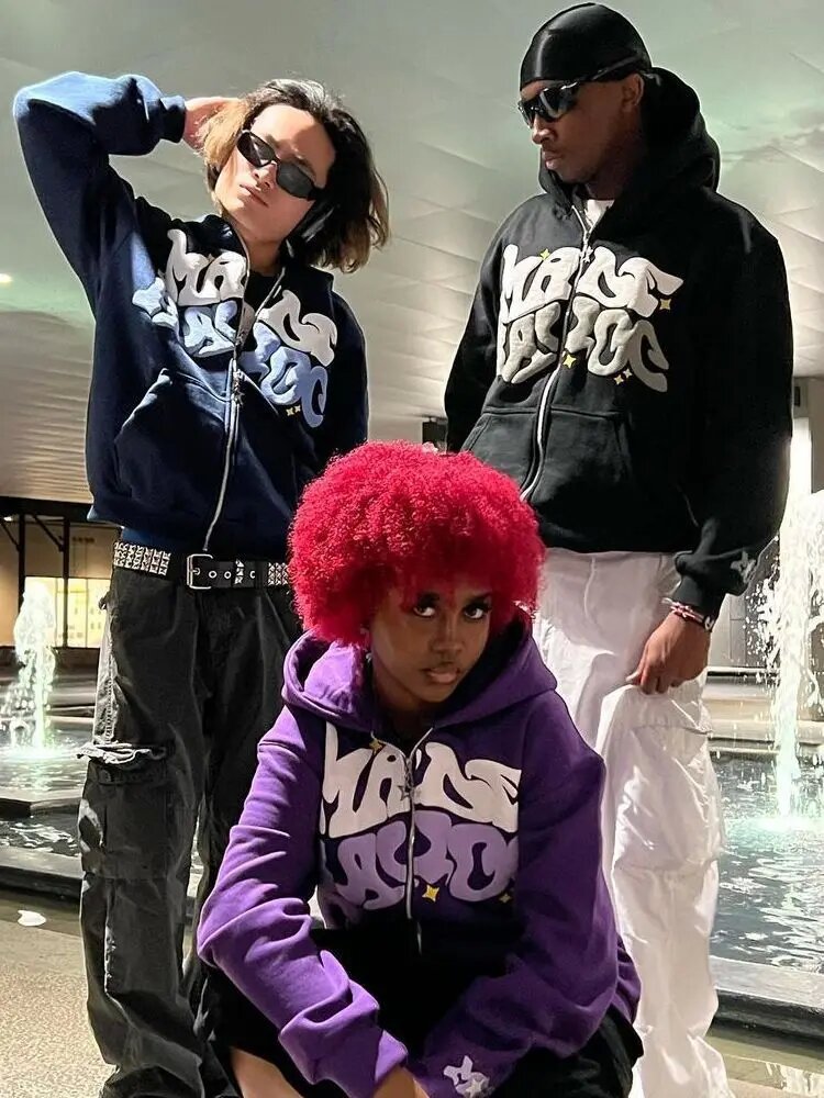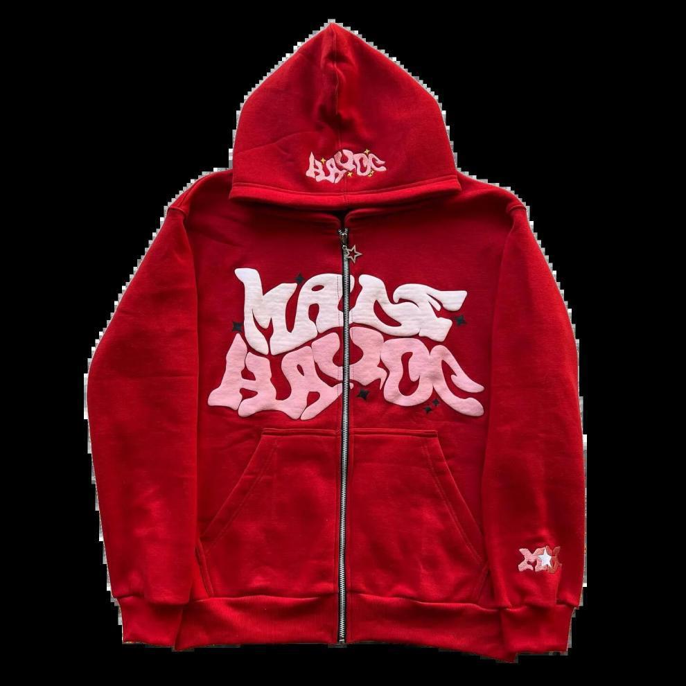 2024 秋の新アメリカ版クラシックフレームフード付きスウェットシャツメンズラウンドネックルーズカップルフード付きジャケットイントレンド