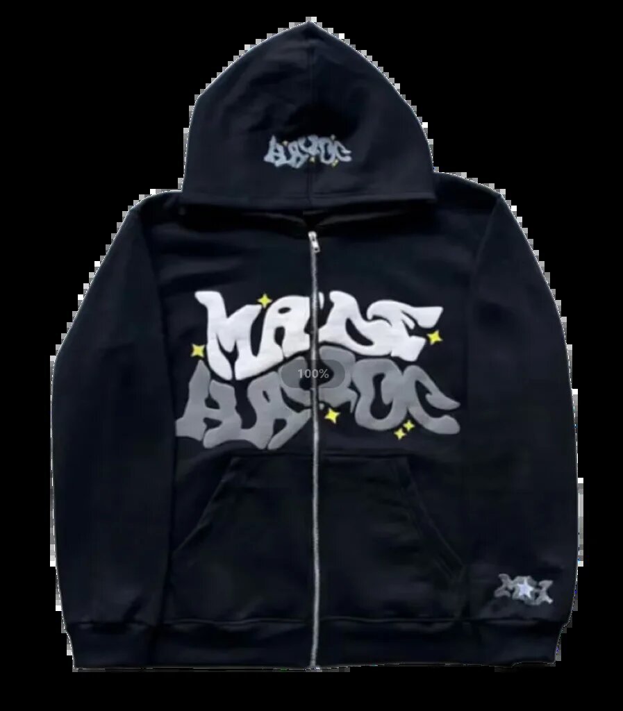 アメリカンストリートヒップホップレタープリントジッパーパーカーメンズカジュアル多用途ファッションフード付きカーディガン在庫あり