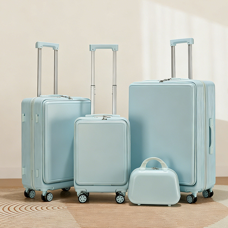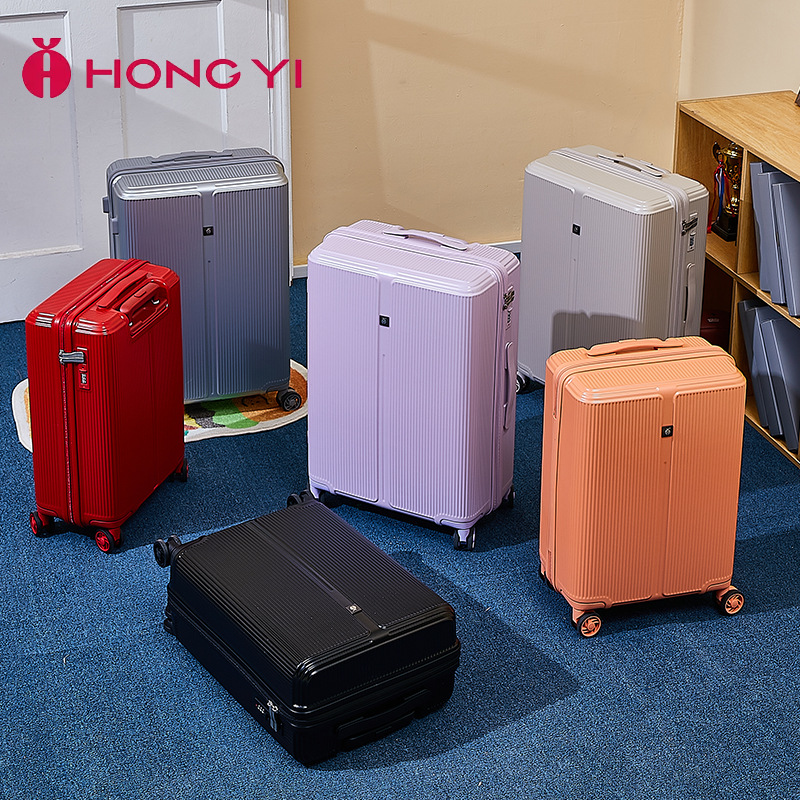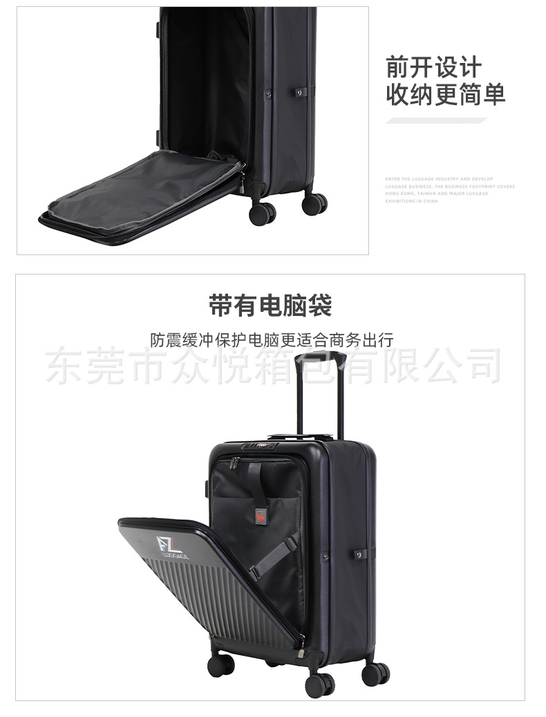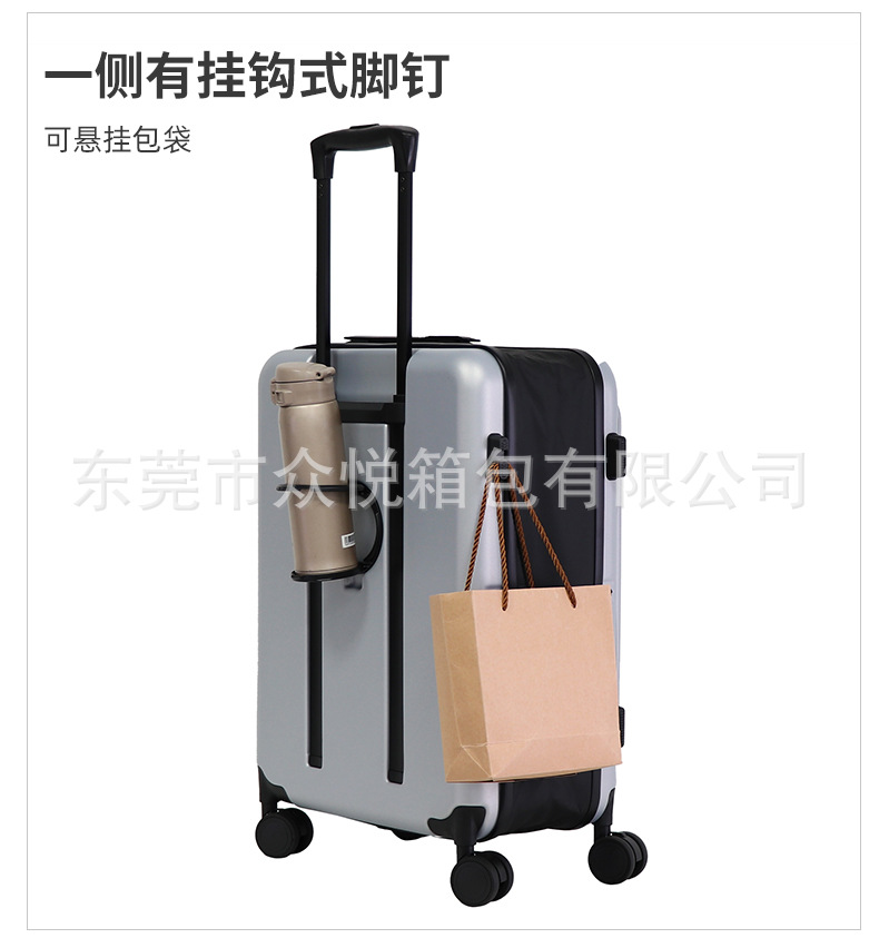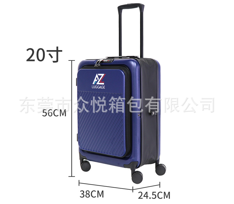 カスタマイズ可能なスーツケース、フロントオープン式、24inchインチ旅行用スーツケース、ワイドローラー、静音ユニバーサルホイール、OEMロゴ対応、パスワードロック付き