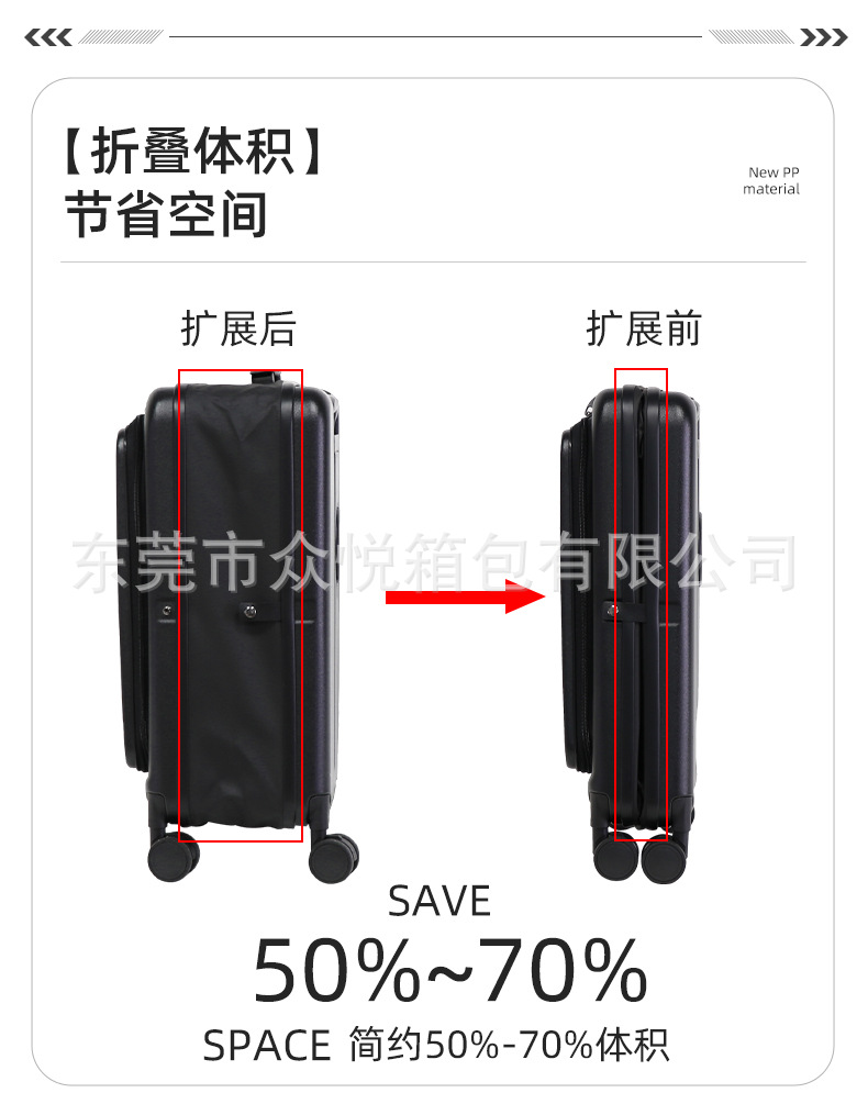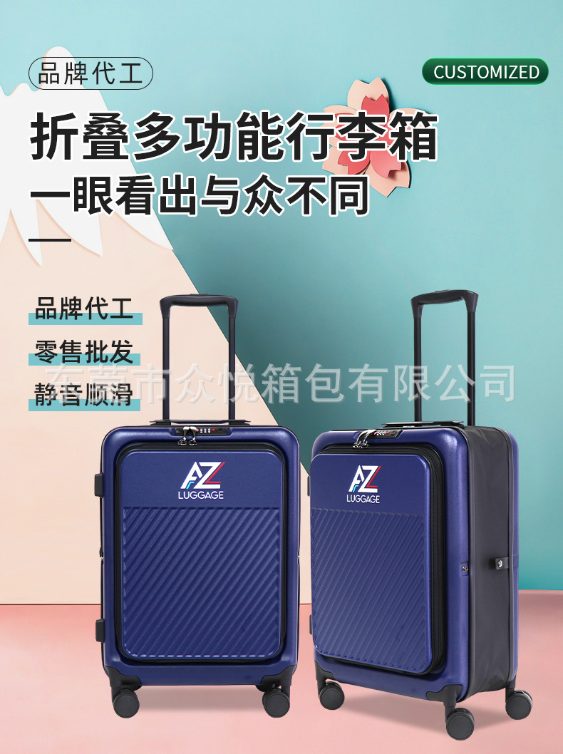 外国貿易折りたたみトロリーケースユニバーサルホイール拡張層スーツケースフロントオープン収納スーツケースパスワード搭乗ケース