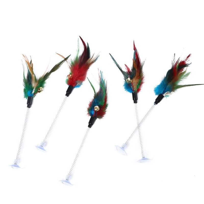 厂家直销摇摆羽毛弹簧逗猫棒铃铛吸盘弹簧自嗨耐用逗猫玩猫咪玩具