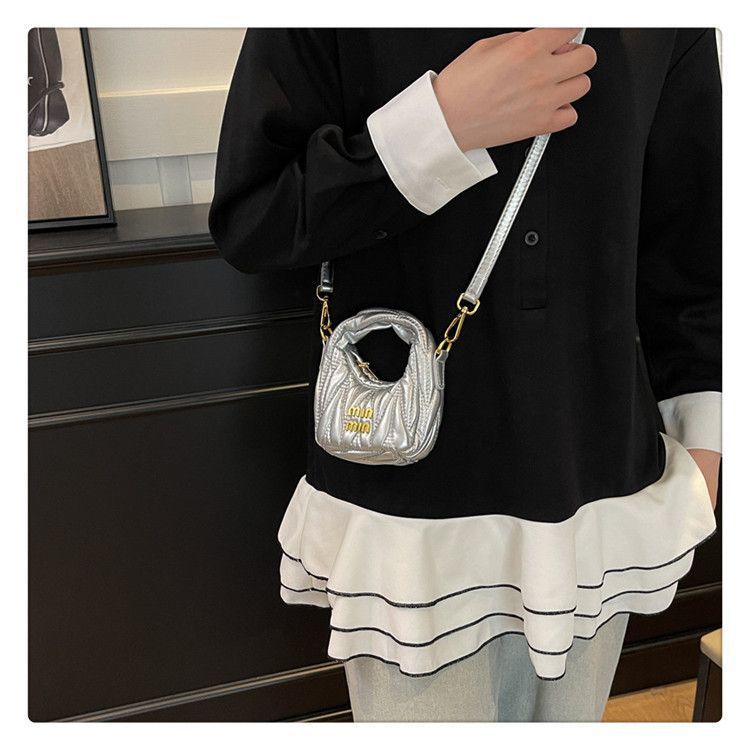 miu系新款褶皱半圆贝壳饺子包挂件迷你高颜值精致小包女士包挂配