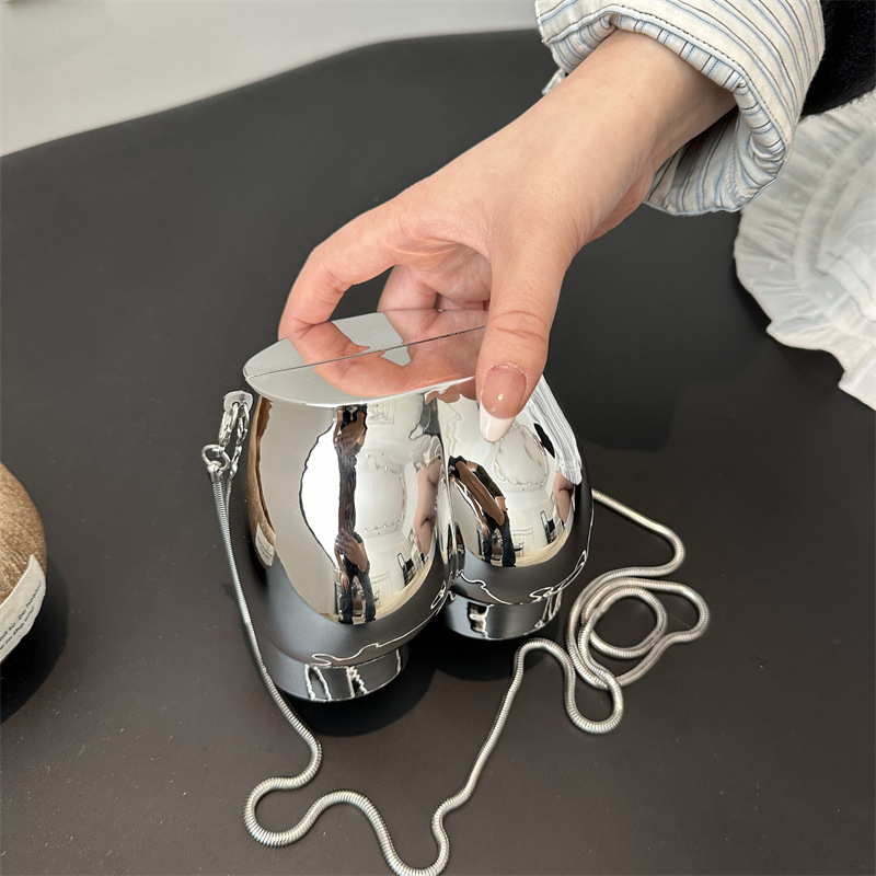 パーソナライズされた面白いお尻メタルバッグ女性のための 2025 初秋の新しいニッチデザイン光沢のあるチェーンクロスボディショルダーバッグ