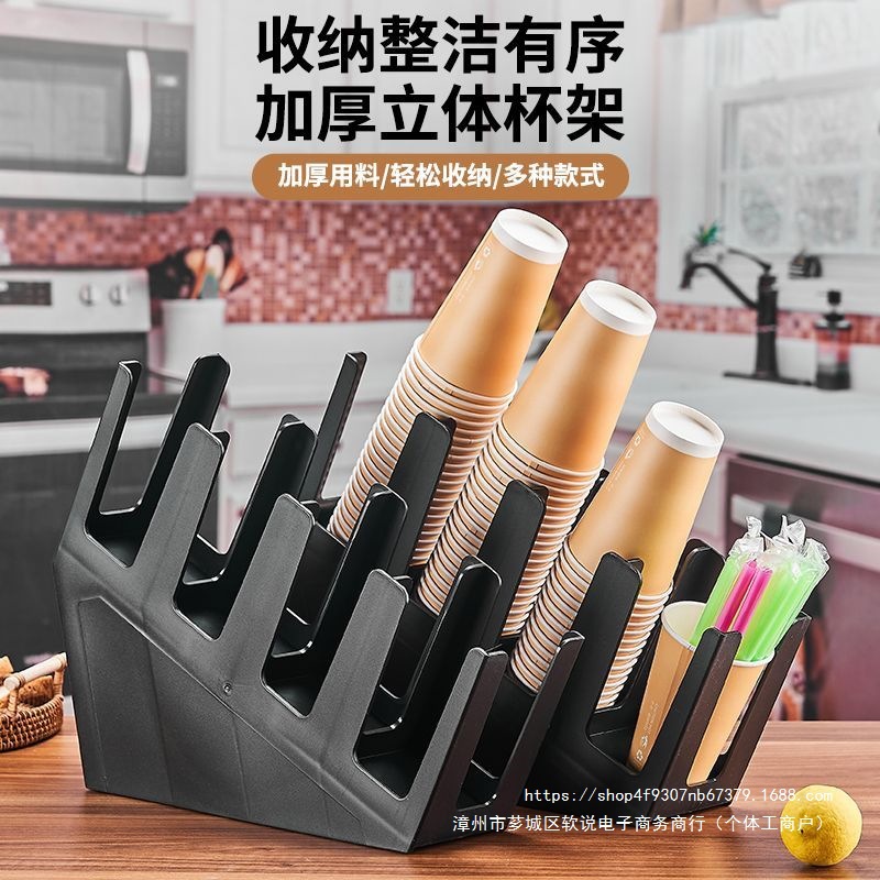 厚みのある斜めの4つのコンパートメントのコーヒーミルクティーカップホルダー使い捨てカップホルダーペーパーカップ収納ラックデスクトップ収納カップホルダーフリー
