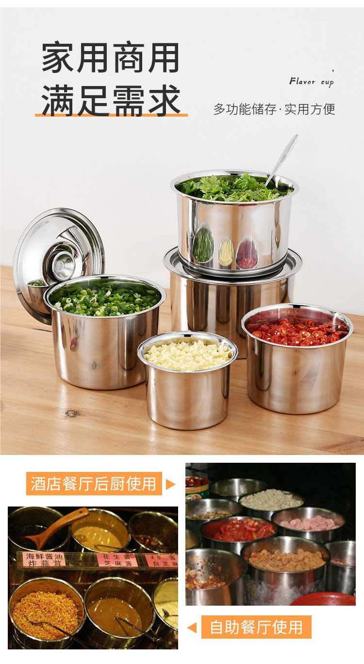 商用不锈钢味盅调料罐摆摊调味桶餐厅厨房调料缸酱料盒圆形带盖子