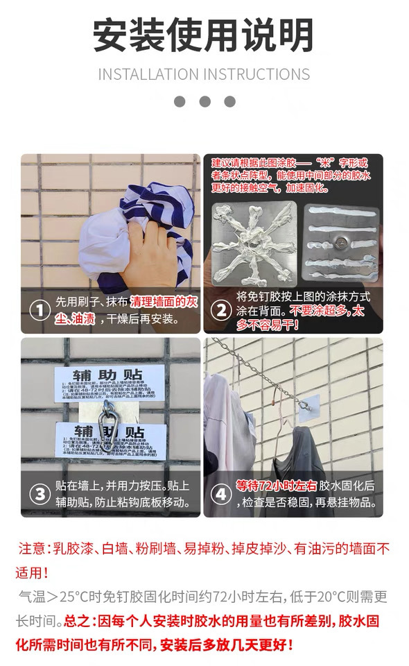 屋外固定物干し日焼け止めネット粘着フックラフセメント壁ストラップネイルフリー接着剤フリーパンチングリングフック