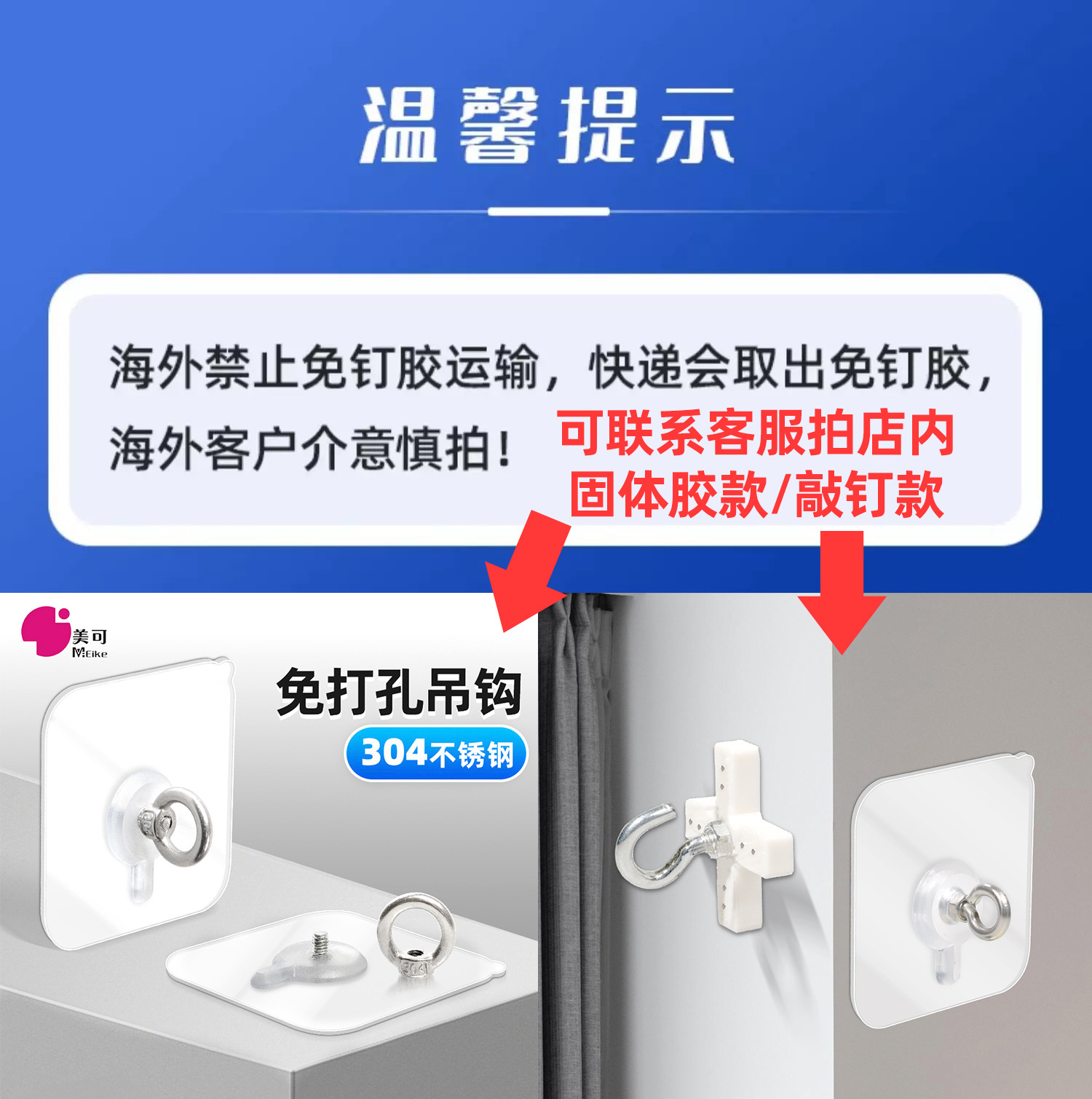物置棚専用釘なしシール304ステンレスフック穴なしタイル壁壁掛け式粘着シート
