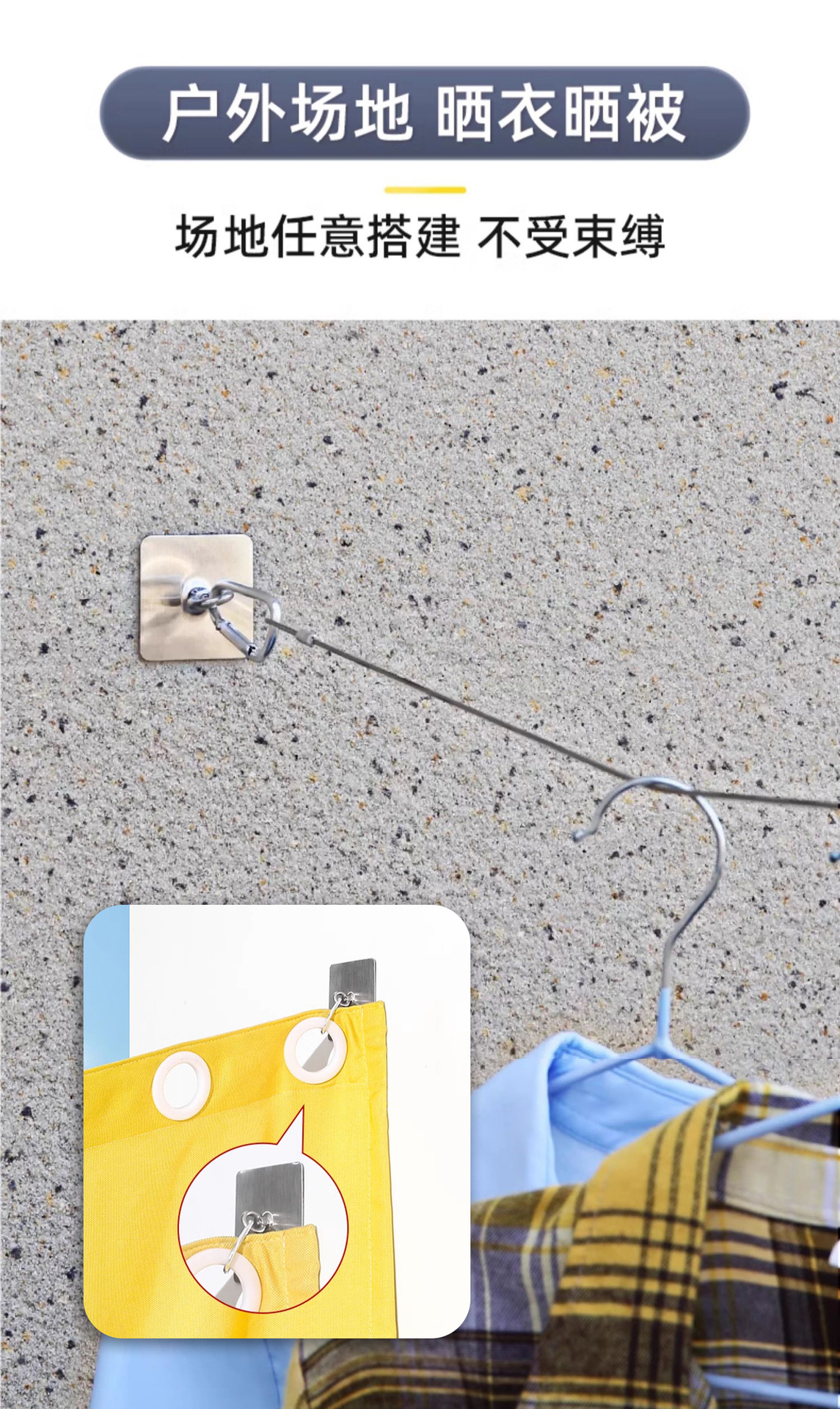 フックフック物干しロープ固定器屋外セメント壁穴なし強力荷重フックリングバックルフック
