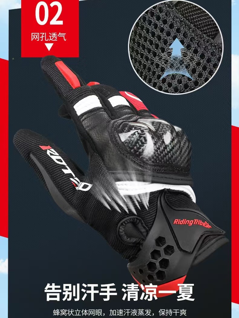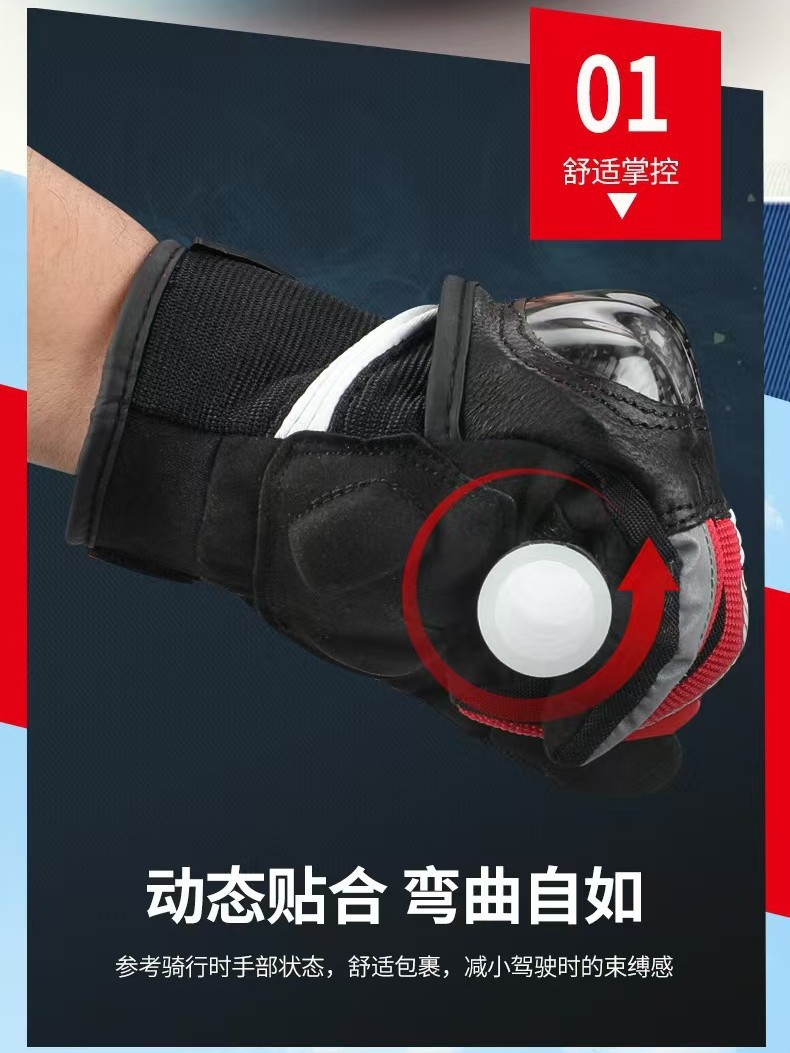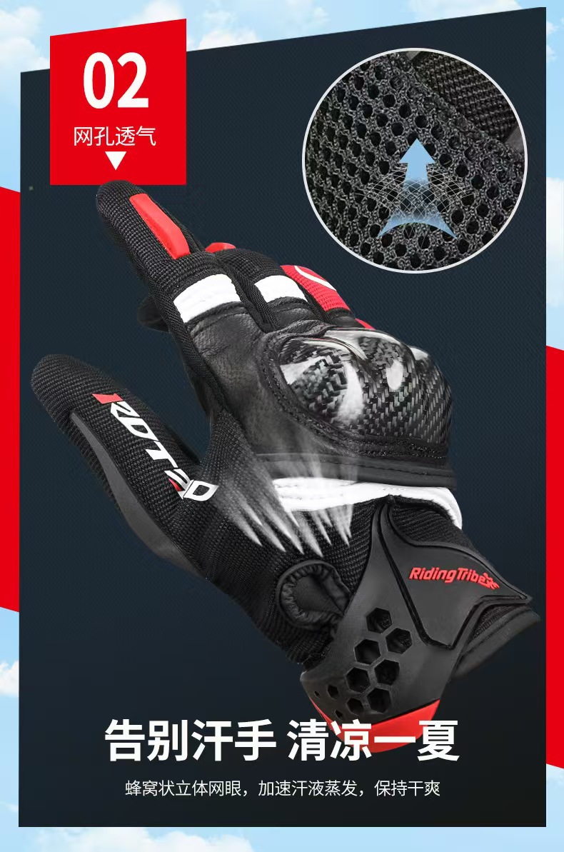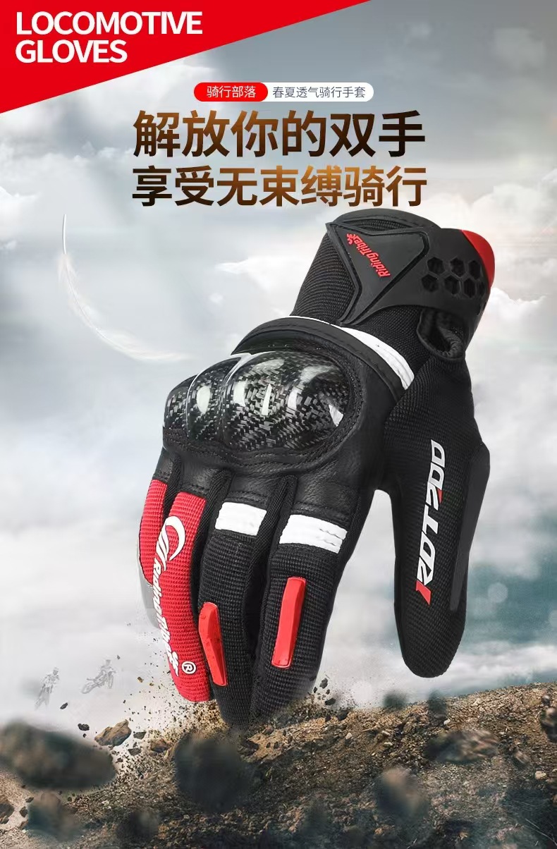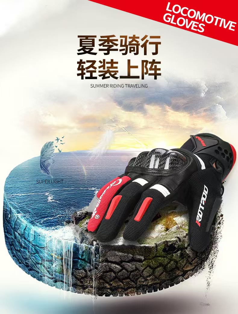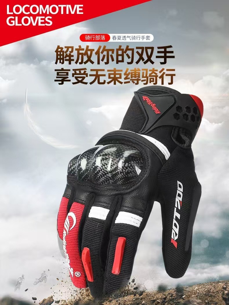 摩托车触屏手套冬季碳纤维机车骑行装备骑士防风防摔全指耐磨防护