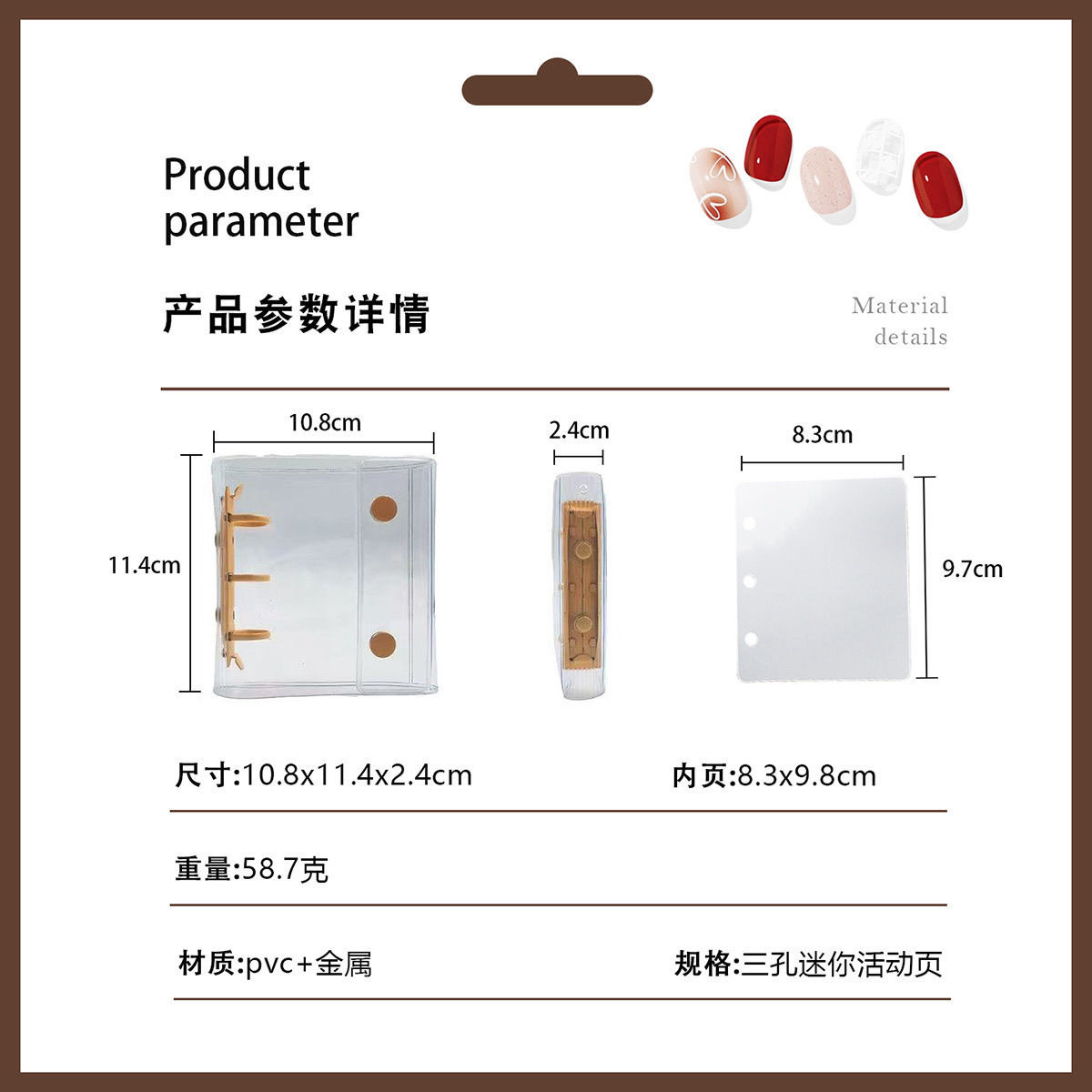 PVC透明A6A7穿戴甲活页收集本A8M5便携防压旅行美甲收纳册展示册