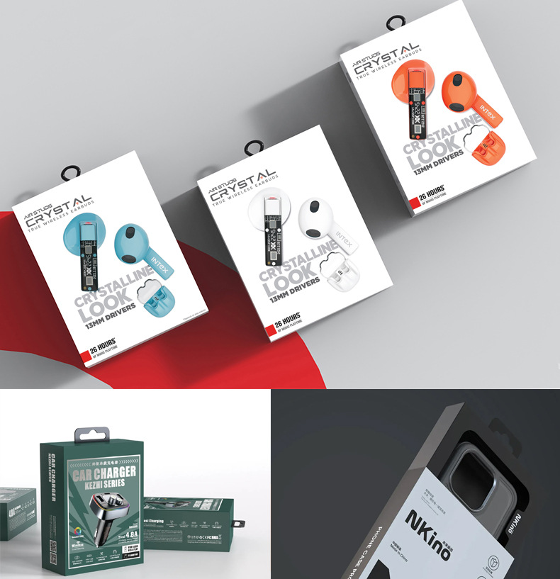 3C デジタル包装箱カスタマイズされた携帯電話ケース Bluetooth ヘッドセットカラーウィンドウ段ボール箱フック包装箱
