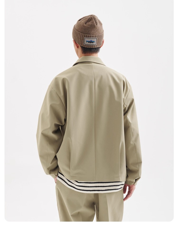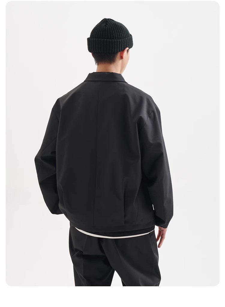 预售时尚大翻领夹克通勤简约春秋款宽松纯色潮流外套男装