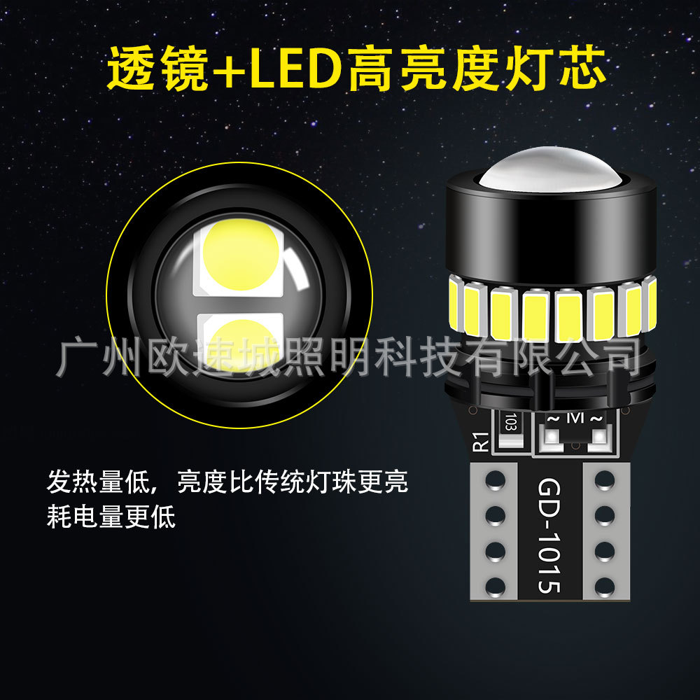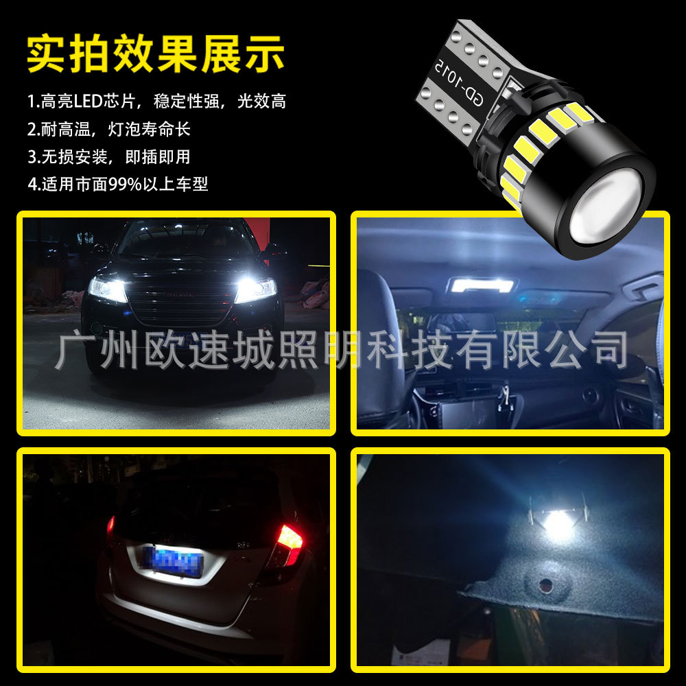 爆款汽车LED车灯t10示宽灯3014+18smd带透镜解码牌照灯3030仪表灯