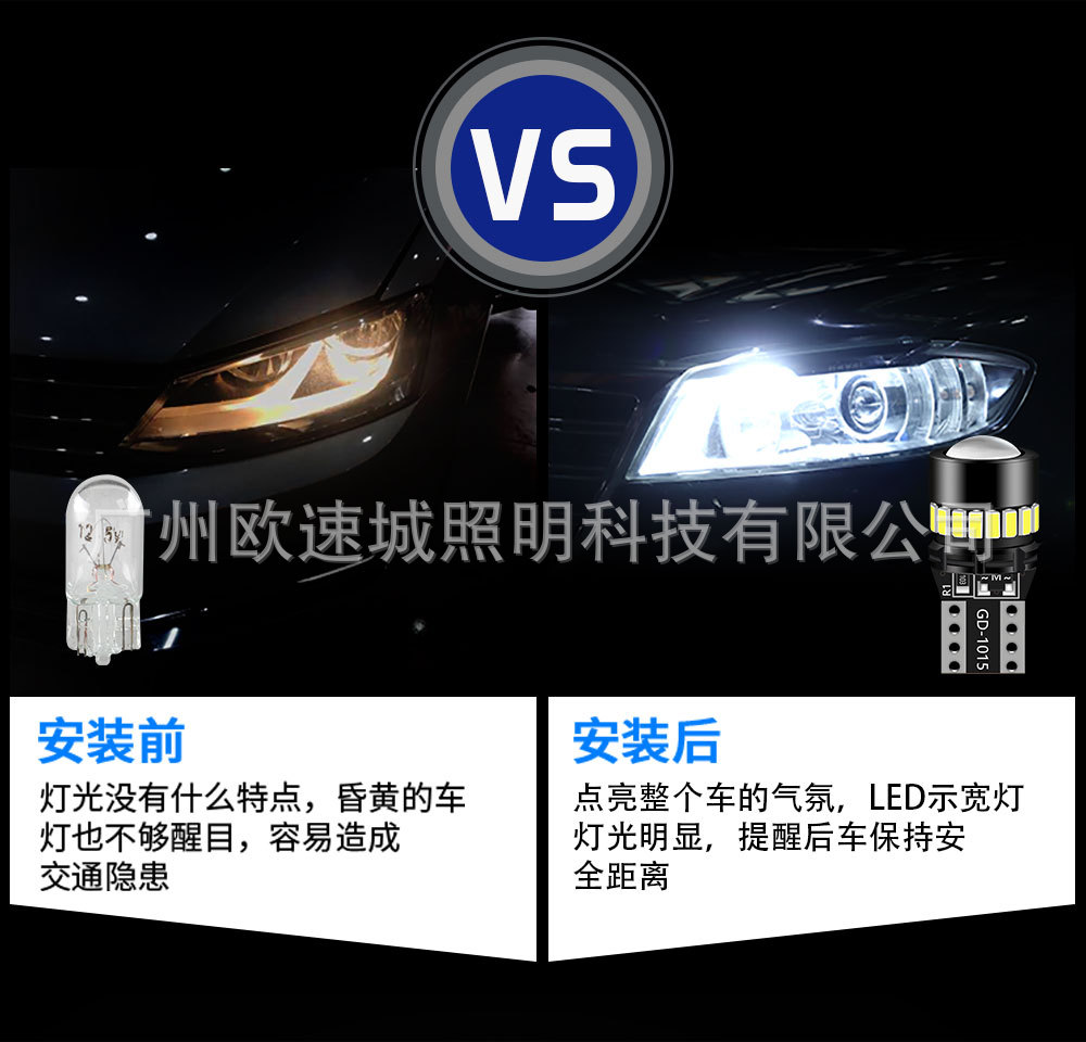 汽车示宽灯改装T10超亮灯泡白光超亮示廓黄光日行车灯led小灯聚光
