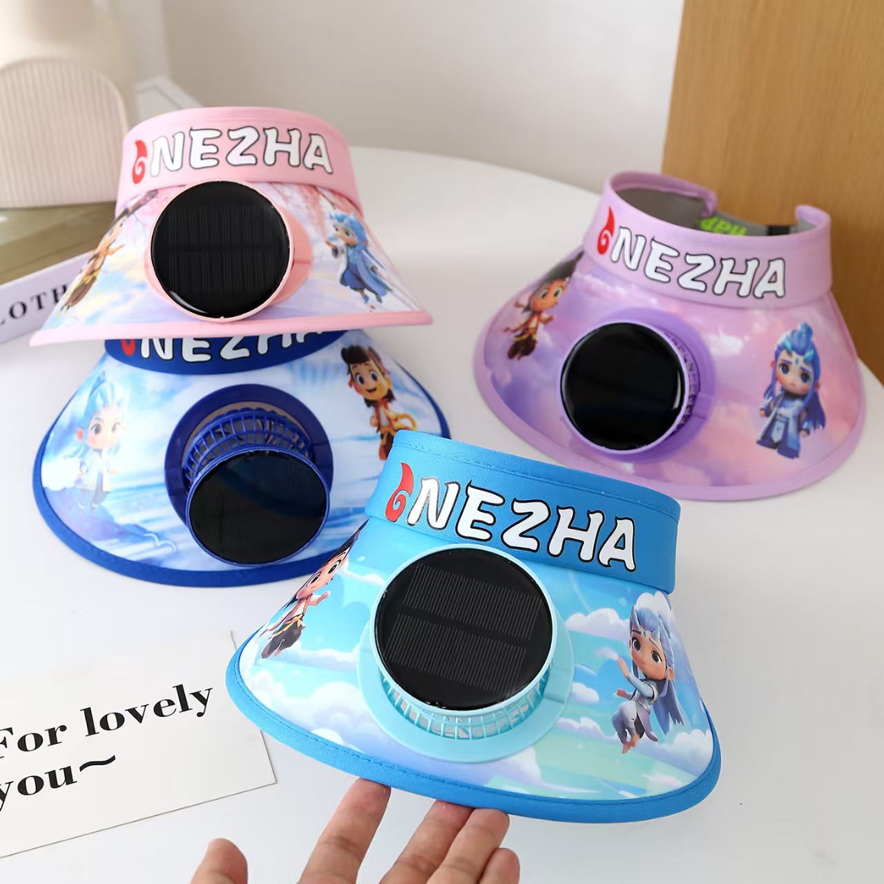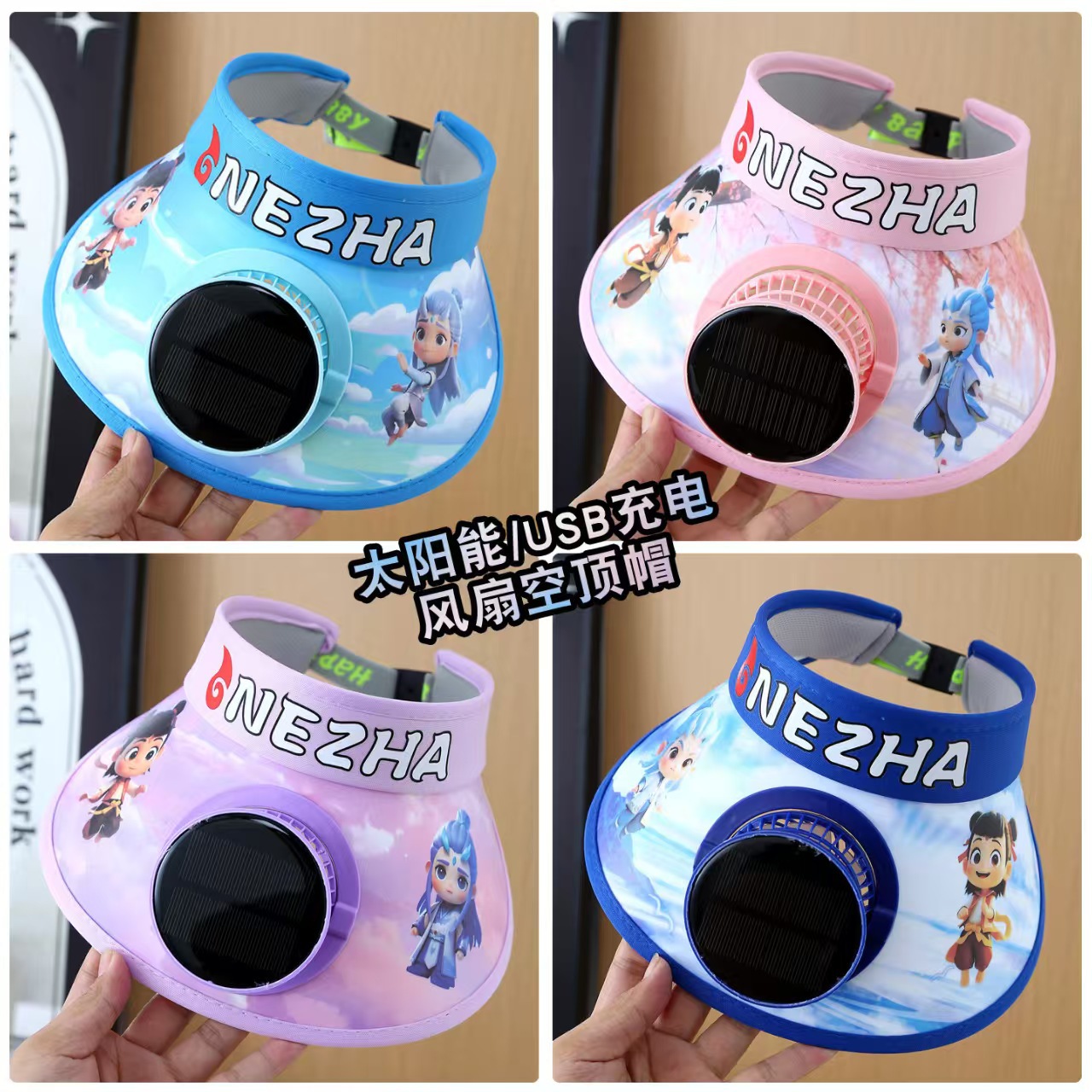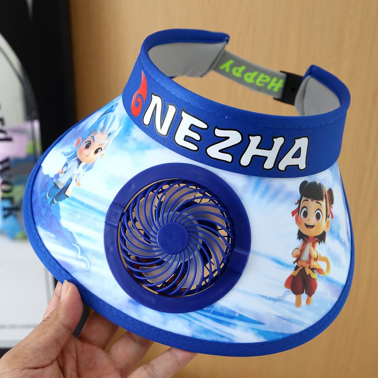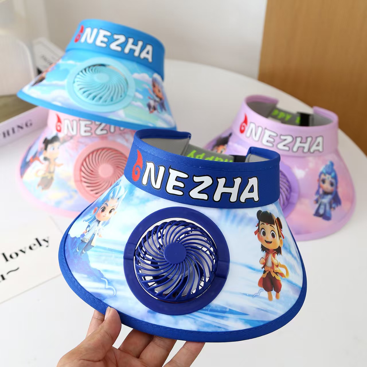 夏中空帽子 Nezha 充電式日焼け止めファン帽子子供用つば UV 漫画日よけ帽子サンハット