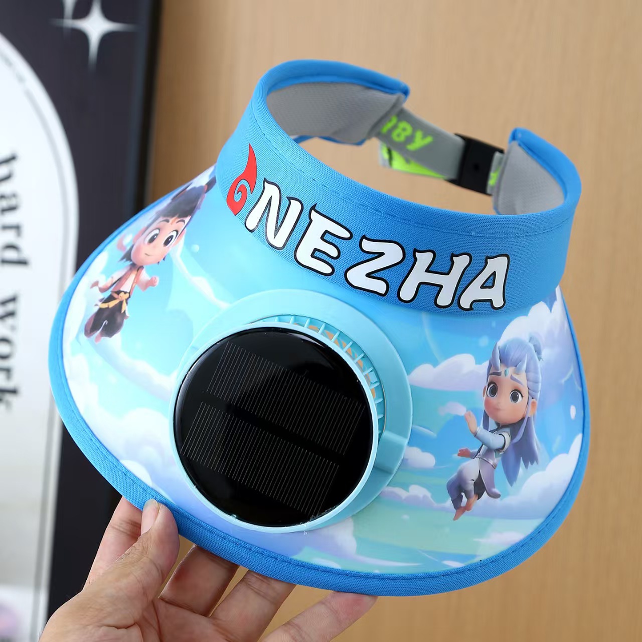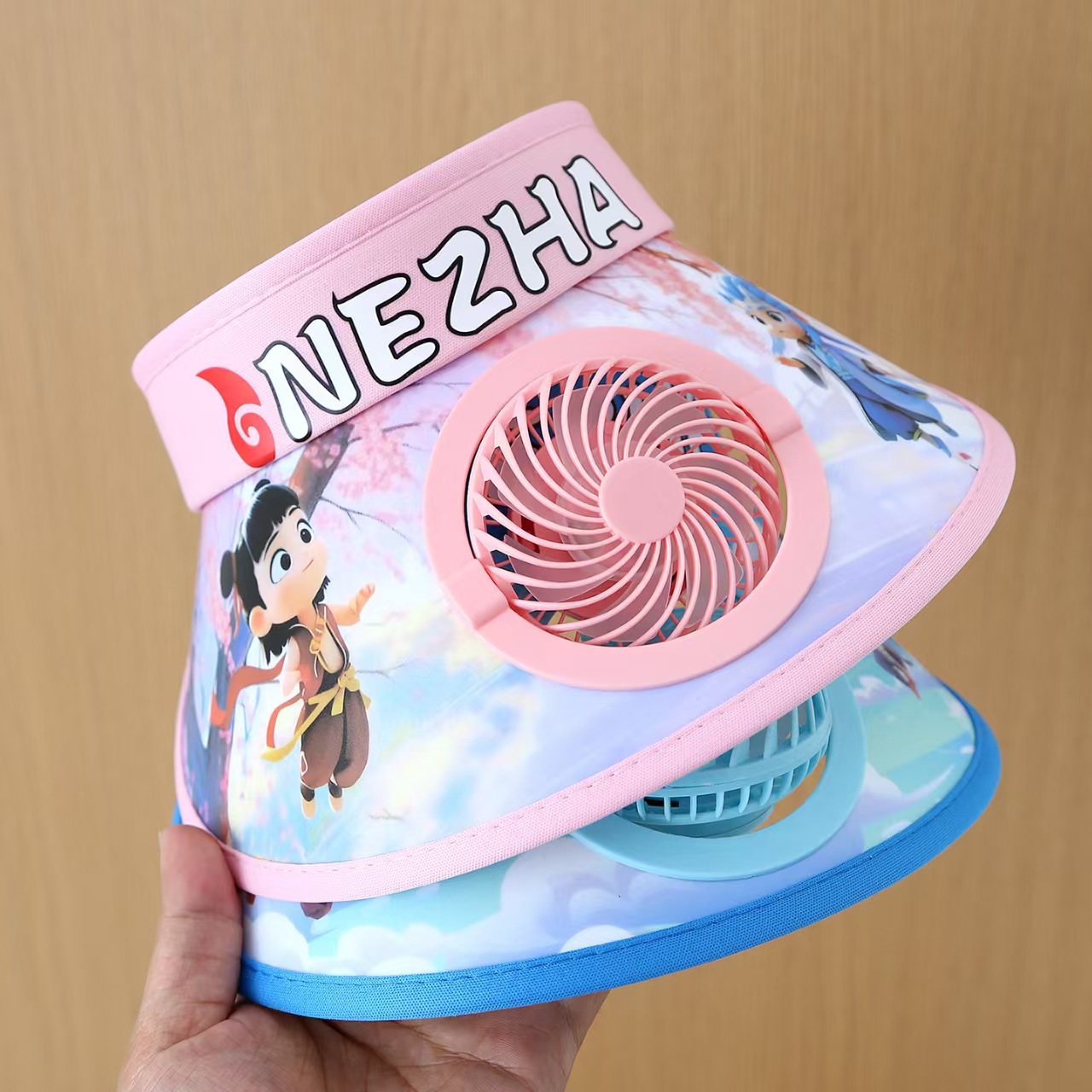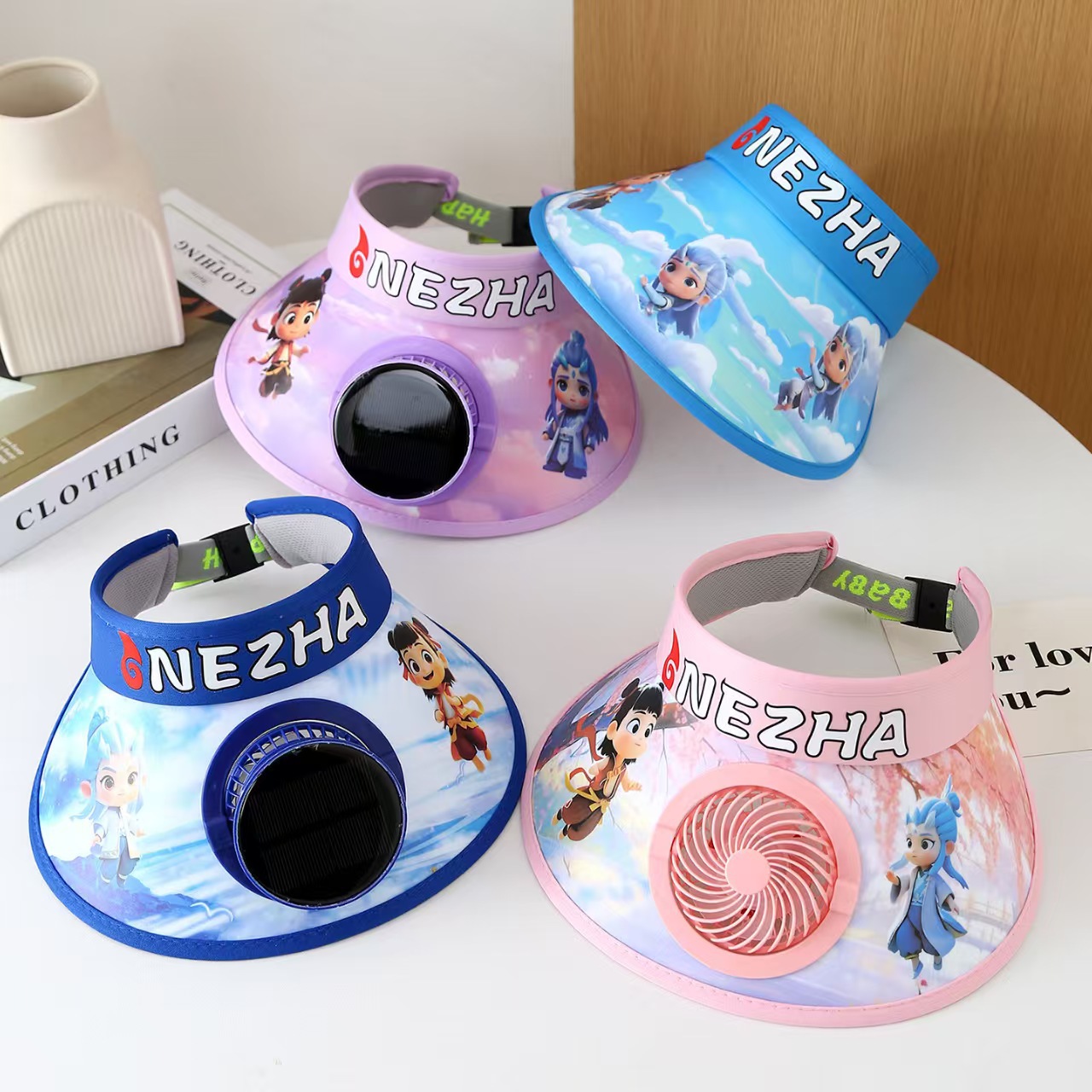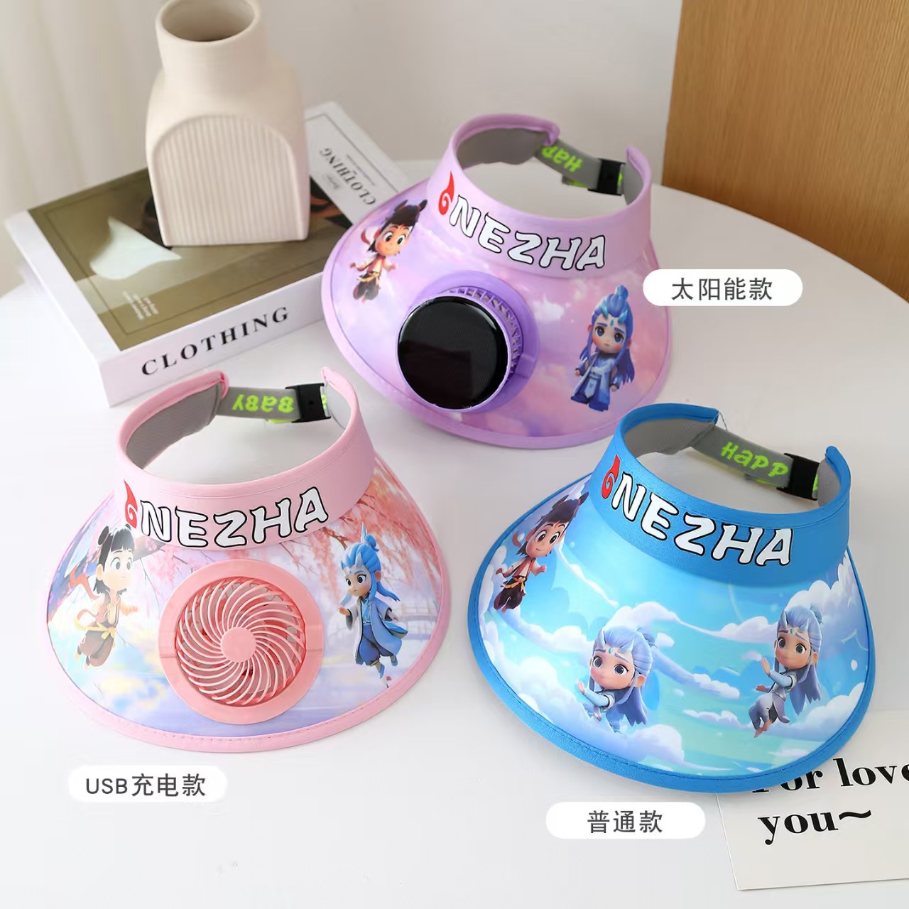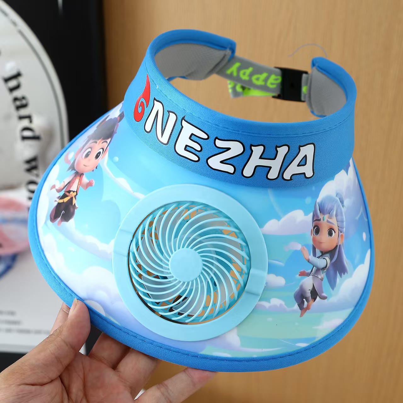 夏中空帽子 Nezha 充電式日焼け止めファン帽子子供用つば UV 漫画日よけ帽子サンハット