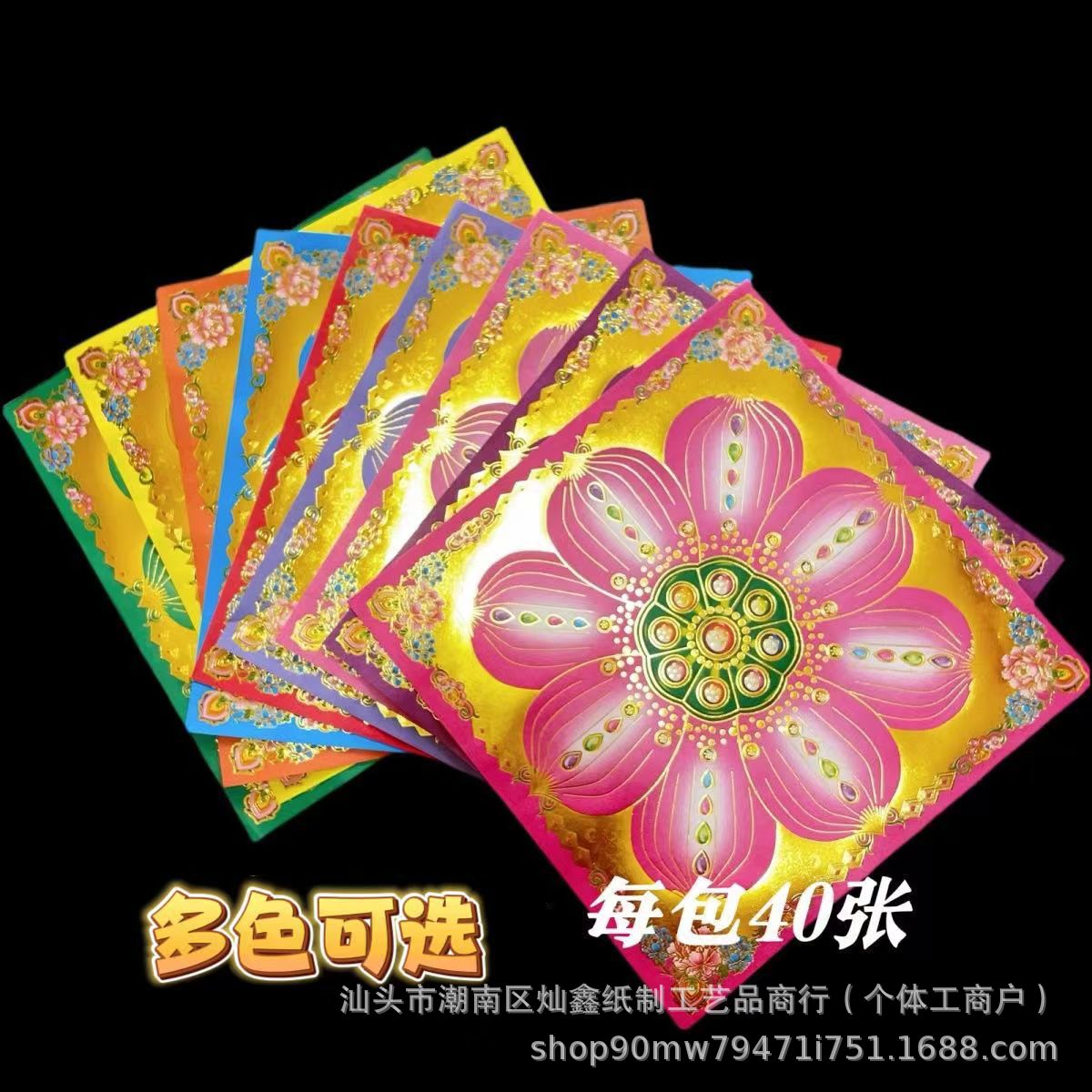 九朵莲花九色烫金纸双面彩印九色金纸正方形元宝折纸加厚初一十五