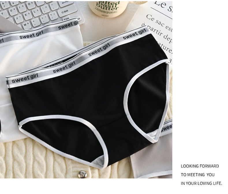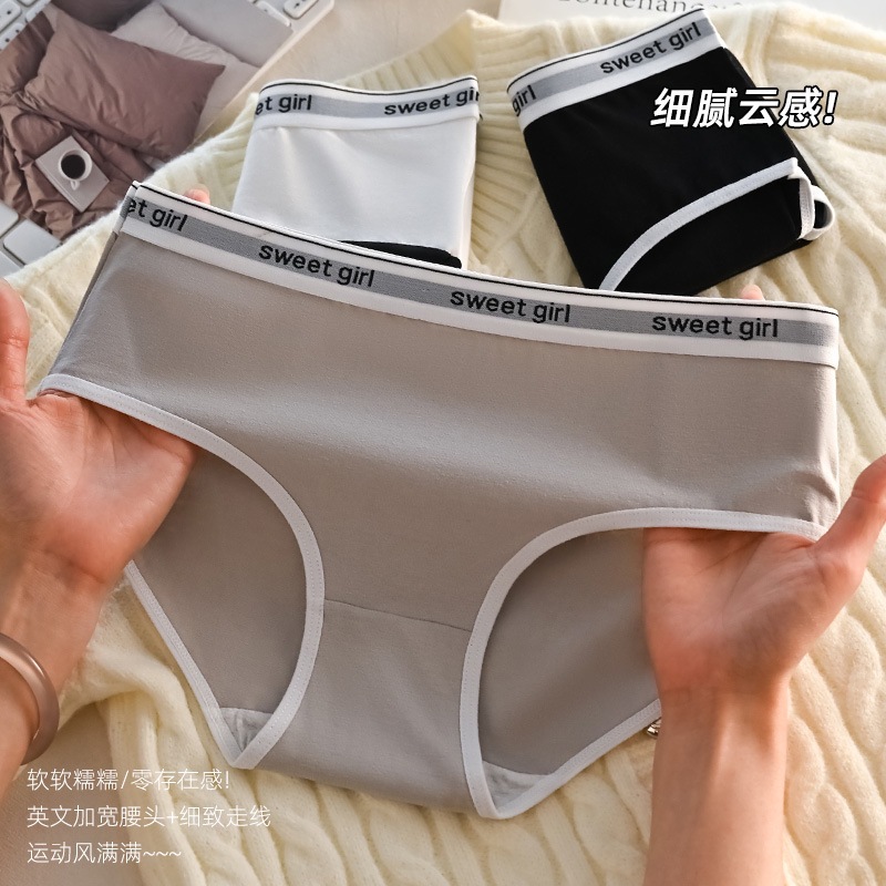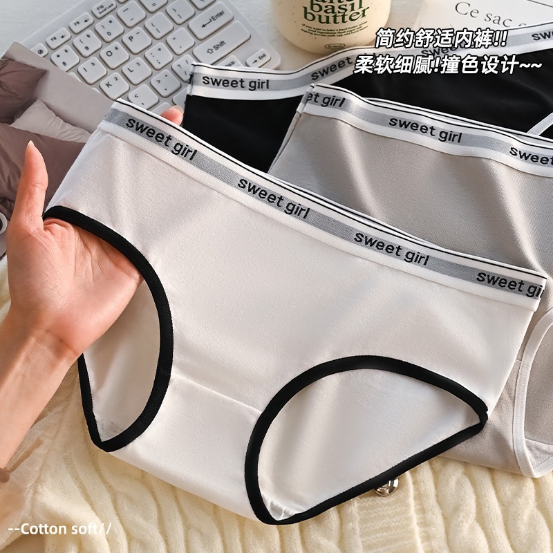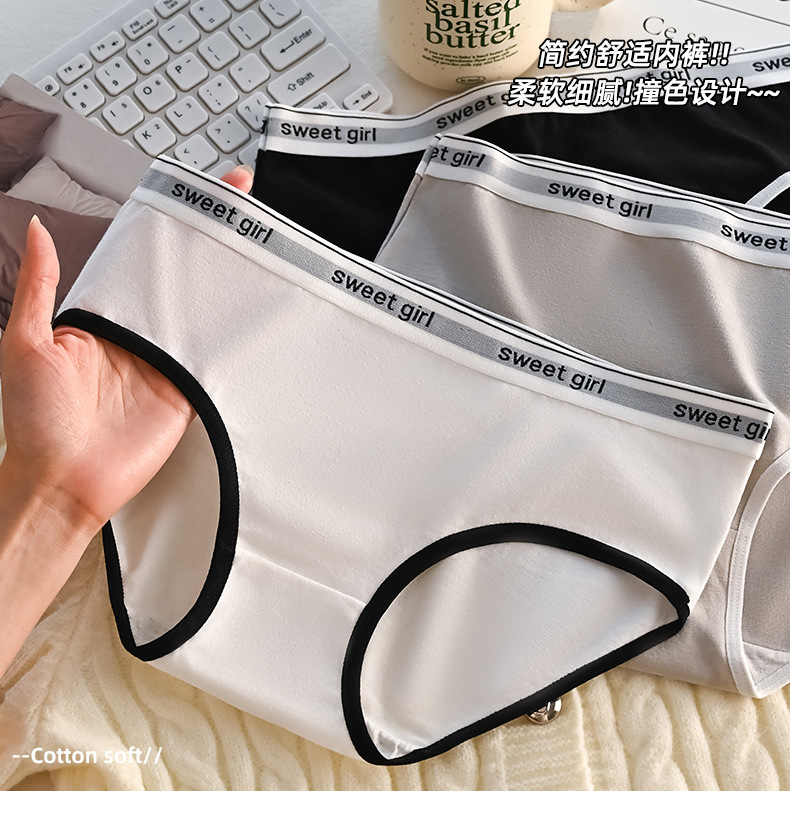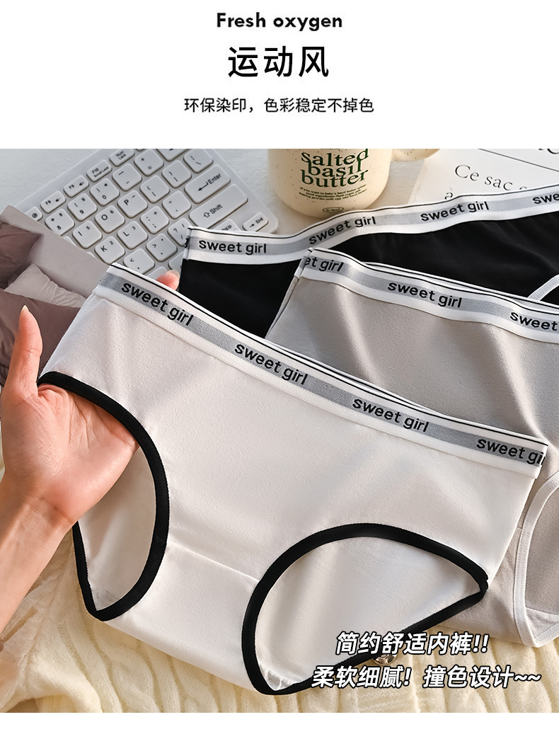 撞色简约字母运动风少女中腰学生内裤舒适透气日系女士三角裤头