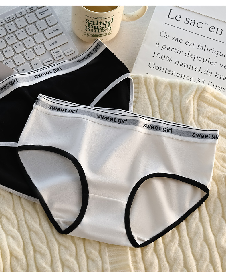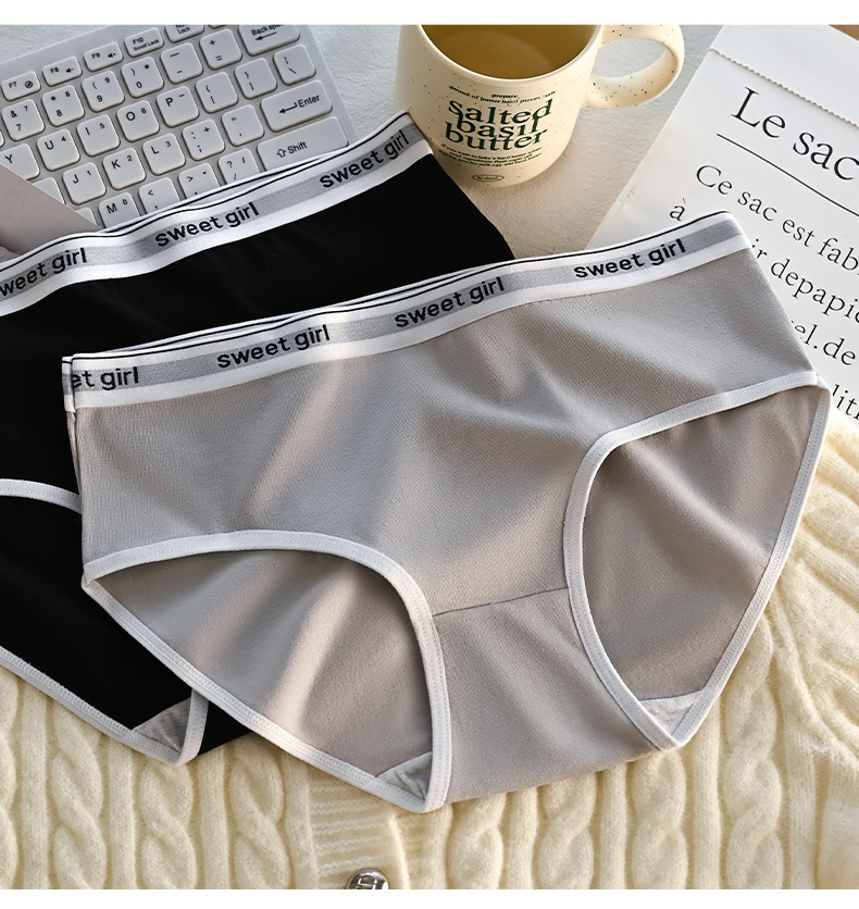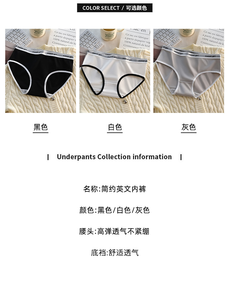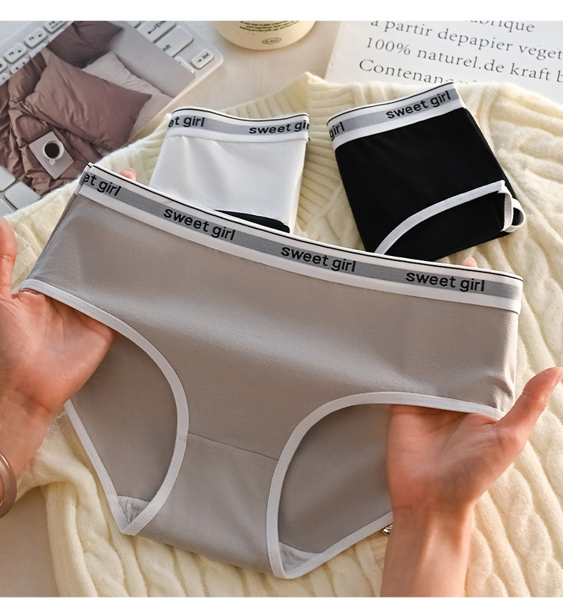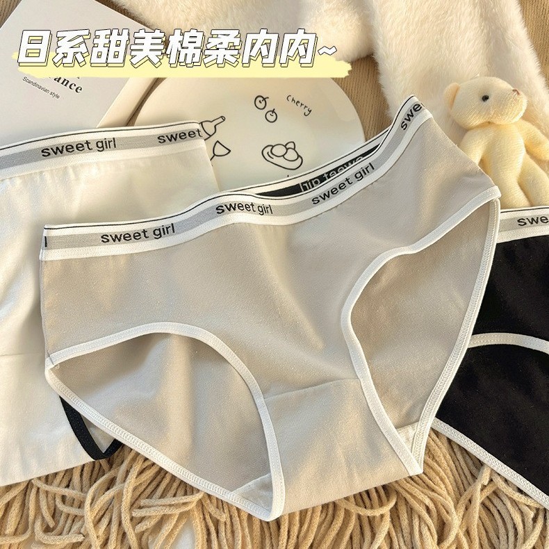 撞色简约字母运动风少女中腰学生内裤舒适透气日系女士三角裤头