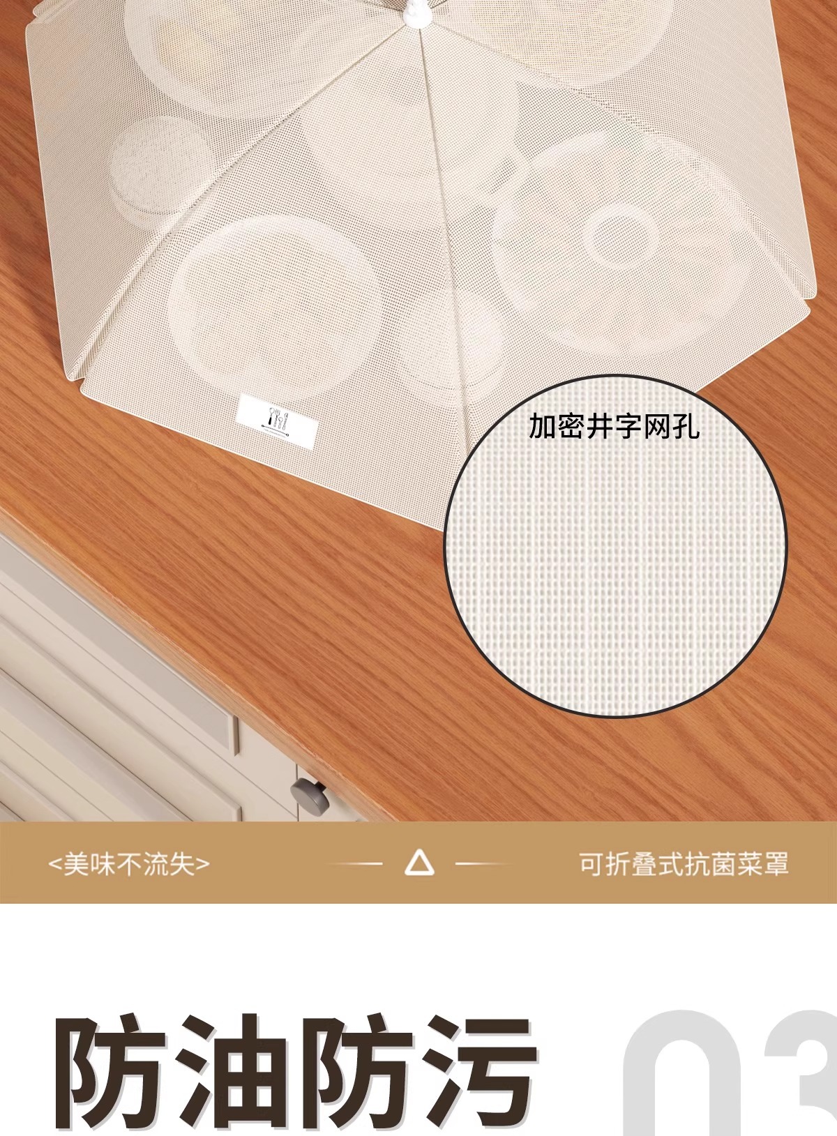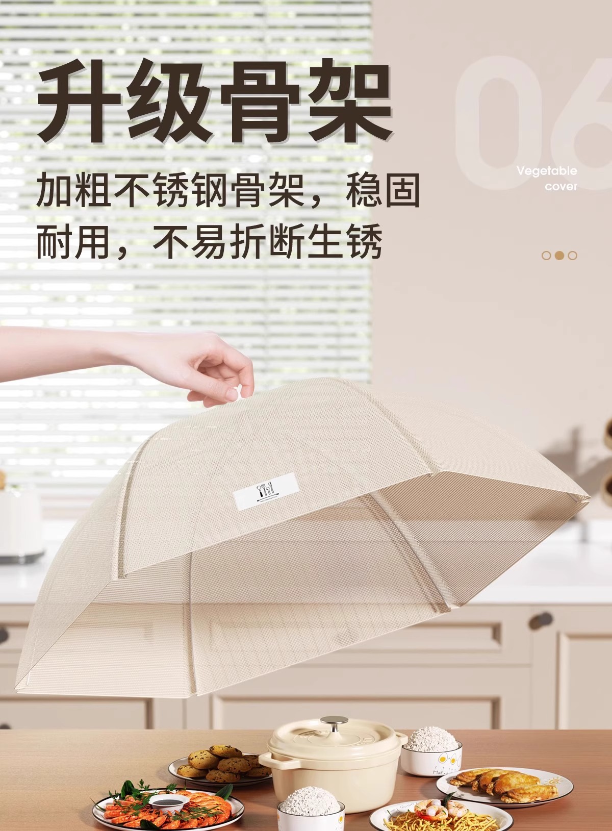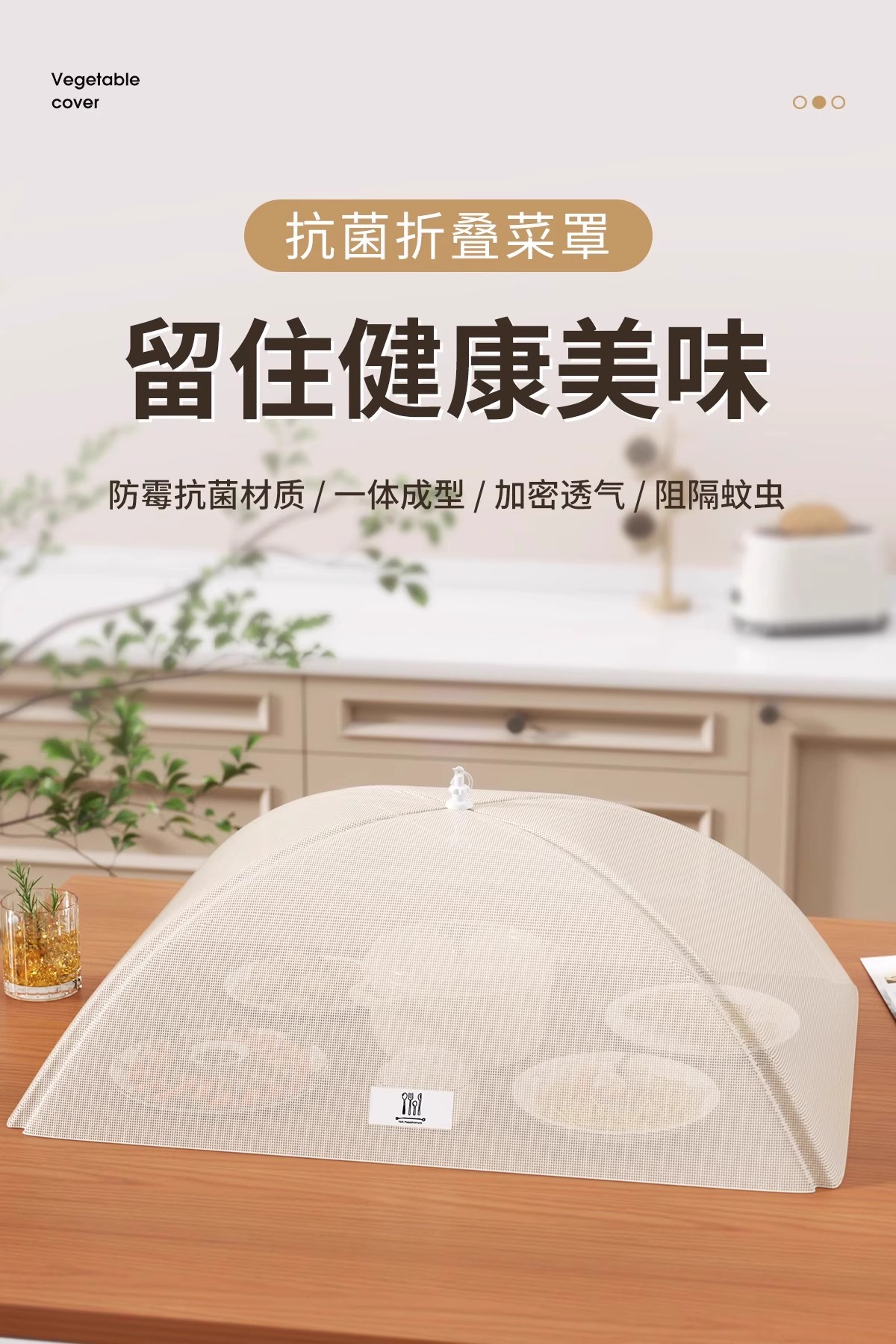 抗菌菜盖罩新款家用饭菜遮尘高级可折叠餐桌防虫网罩菜罩神器
