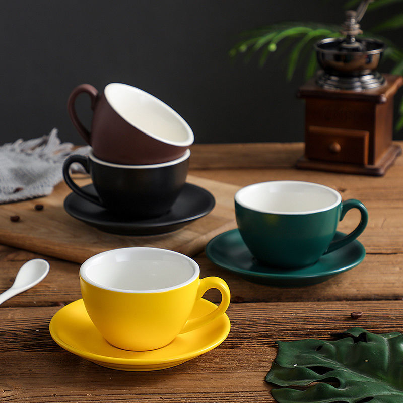 セラミックコーヒーカップセットピュアホワイトカプチーノカップブラックラテアートカップレッドラテカップ大容量カップ