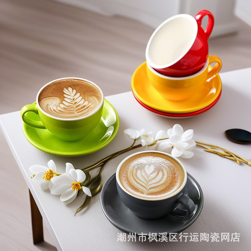 色釉コーヒーカップ皿セットカラーヨーロッパ式専門花カプチーノラテカップ厚さセラミック300ml