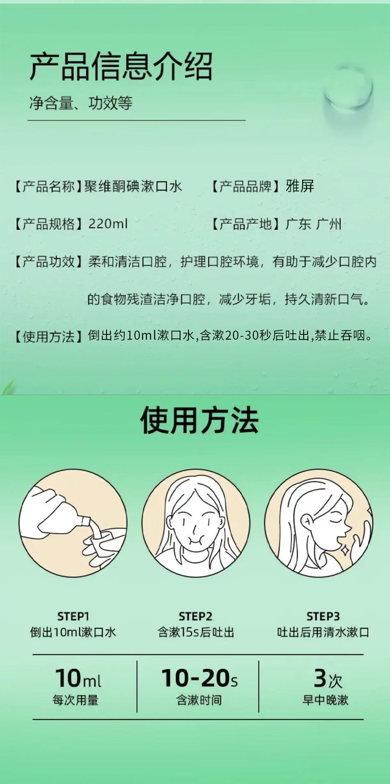 颜色分类 聚维酮碘漱口水蜜桃220ml,聚维酮碘漱口水薄荷220ml