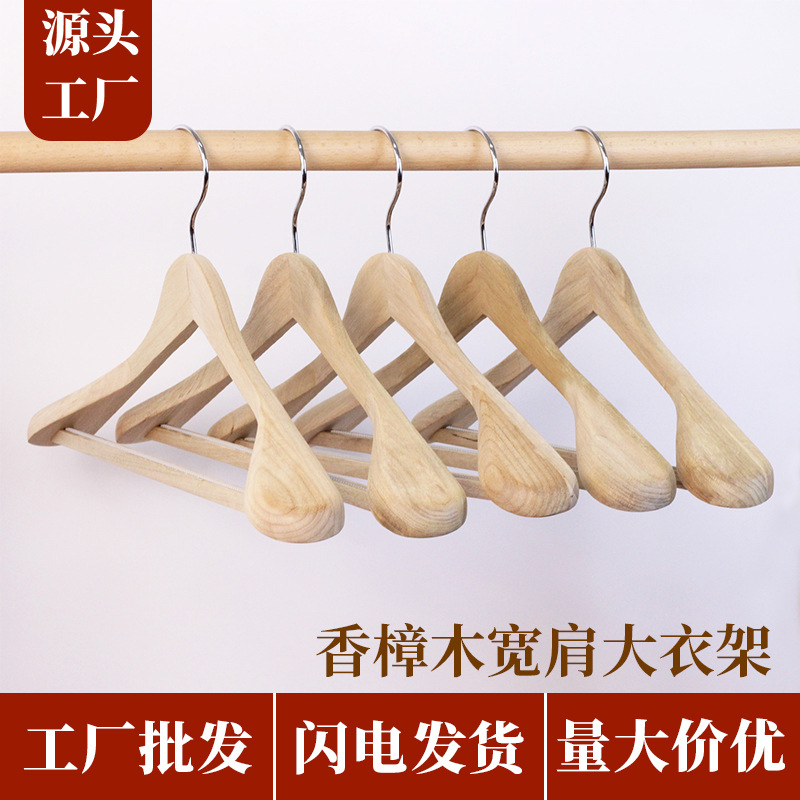 香樟木製衣類ハンガー、幅広肩、厚みのある、滑り止め、肩の角がつかない、家庭用無垢材スーツハンガー、卸売