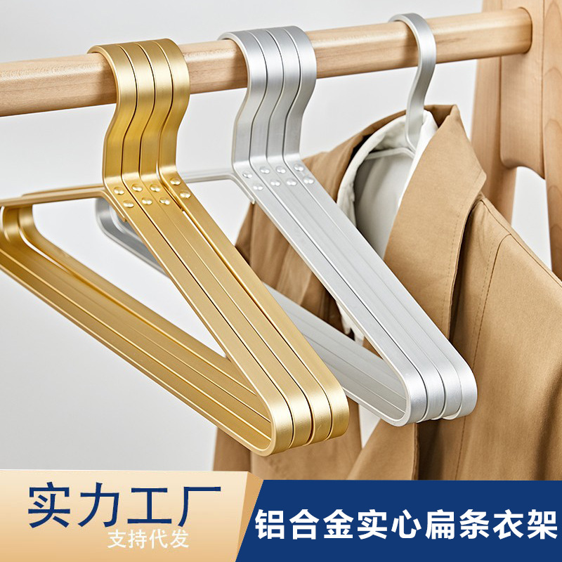 軽豪華な厚手のハンガー洋服店専用の中実宇宙アルミ合金平条ハンガー無痕洋服ハンガー