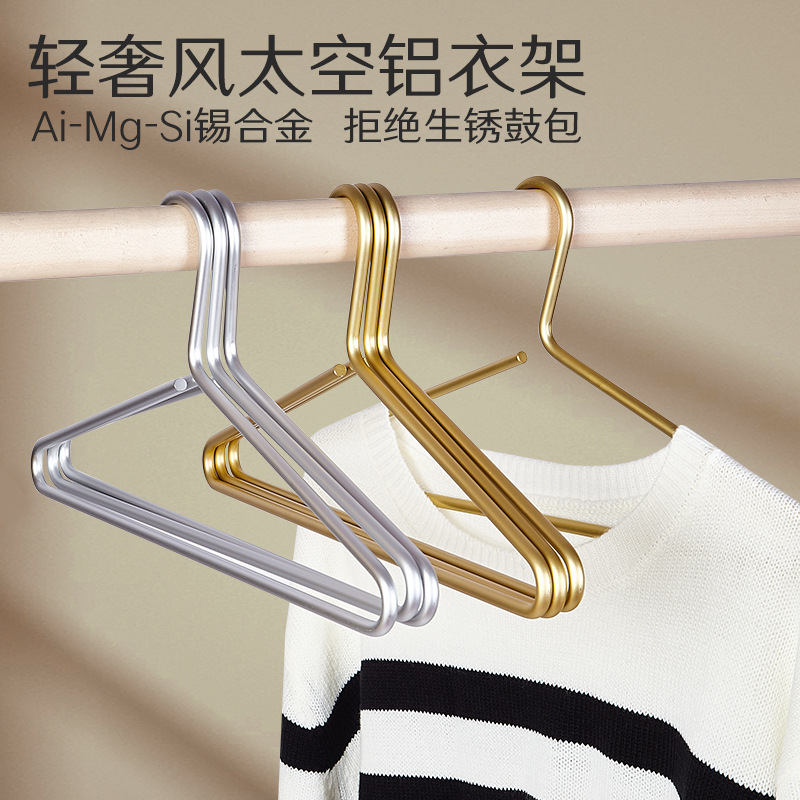 太空铝合金衣架家用挂衣无痕加厚加粗不锈钢衣挂轻奢金色家居衣撑