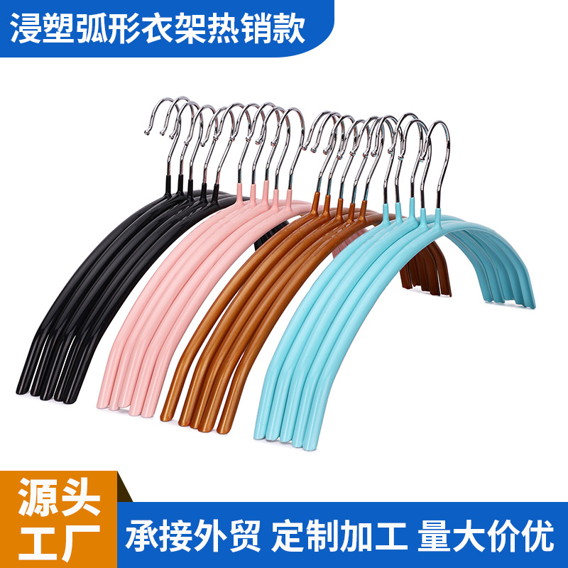 外国貿易カスタマイズされた金属浸漬プラスチックシームレス衣類ハンガー半円形非パッケージ厚く幅広の衣類ハンガー卸売