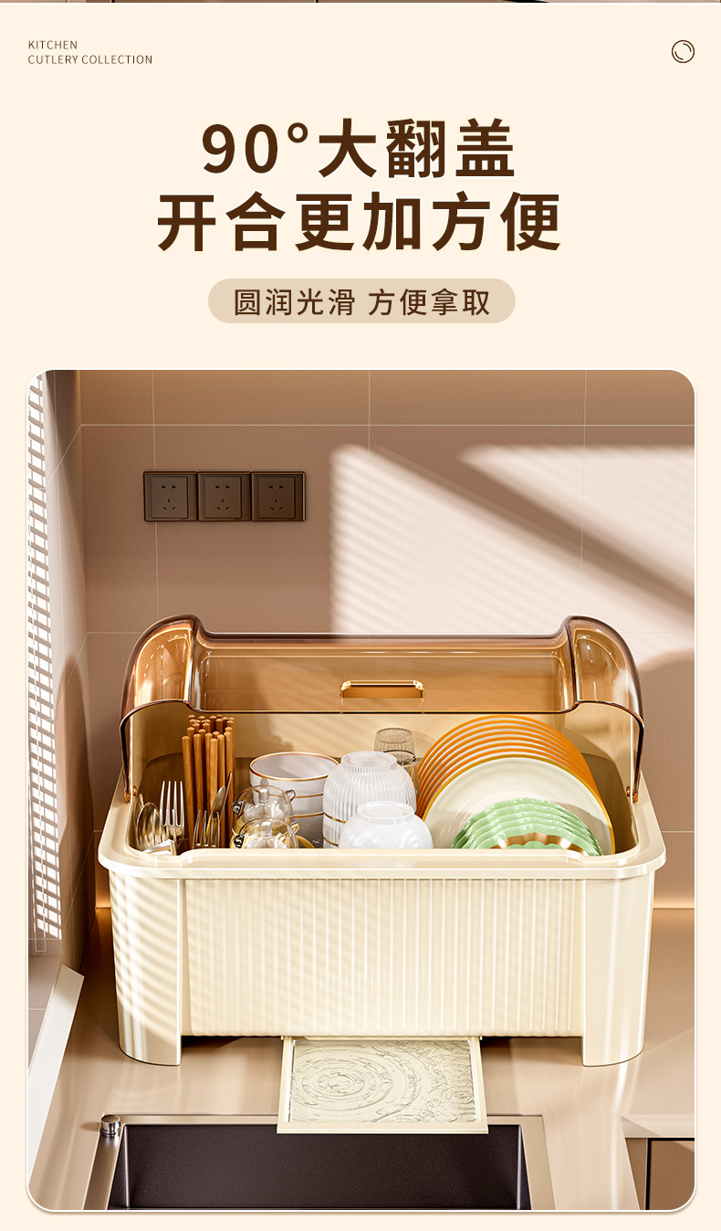 食器収納ボックス、食器ラック、キッチン家庭用多機能排水ラック、防塵食器棚