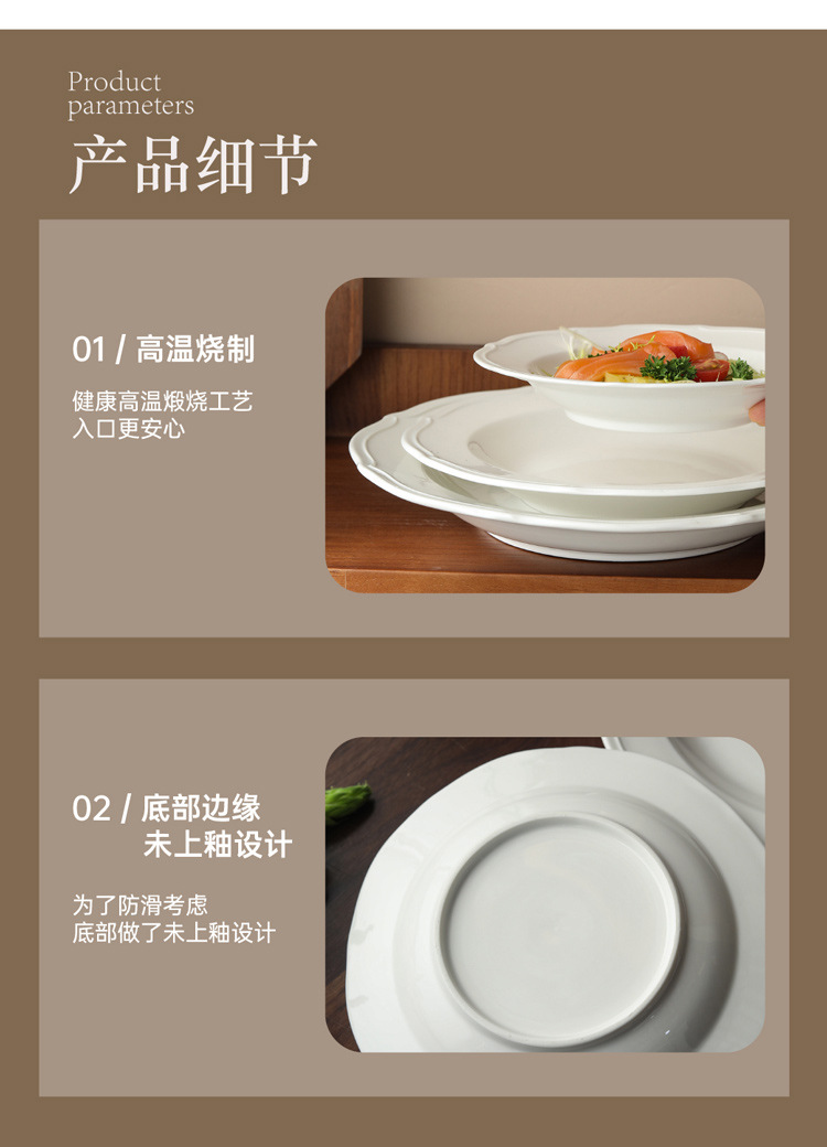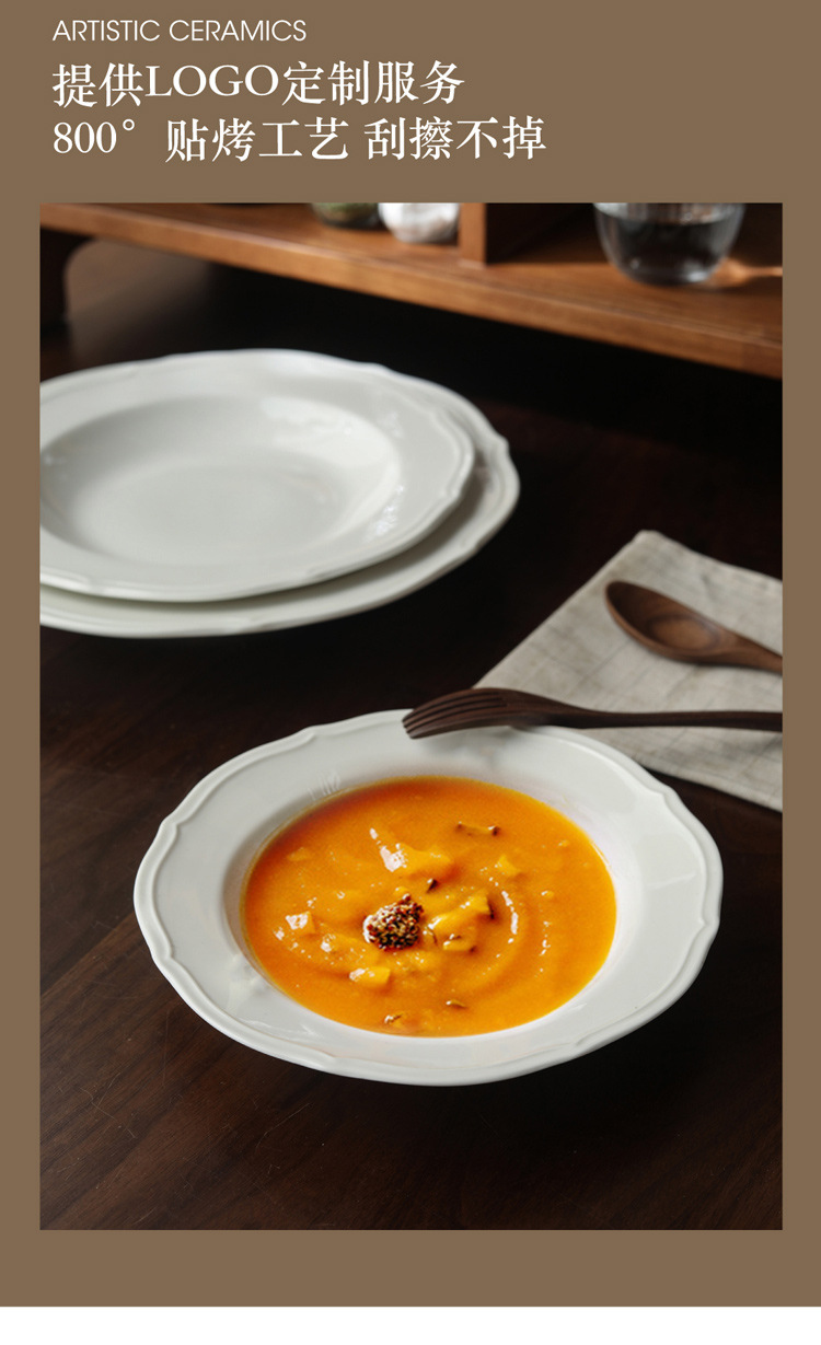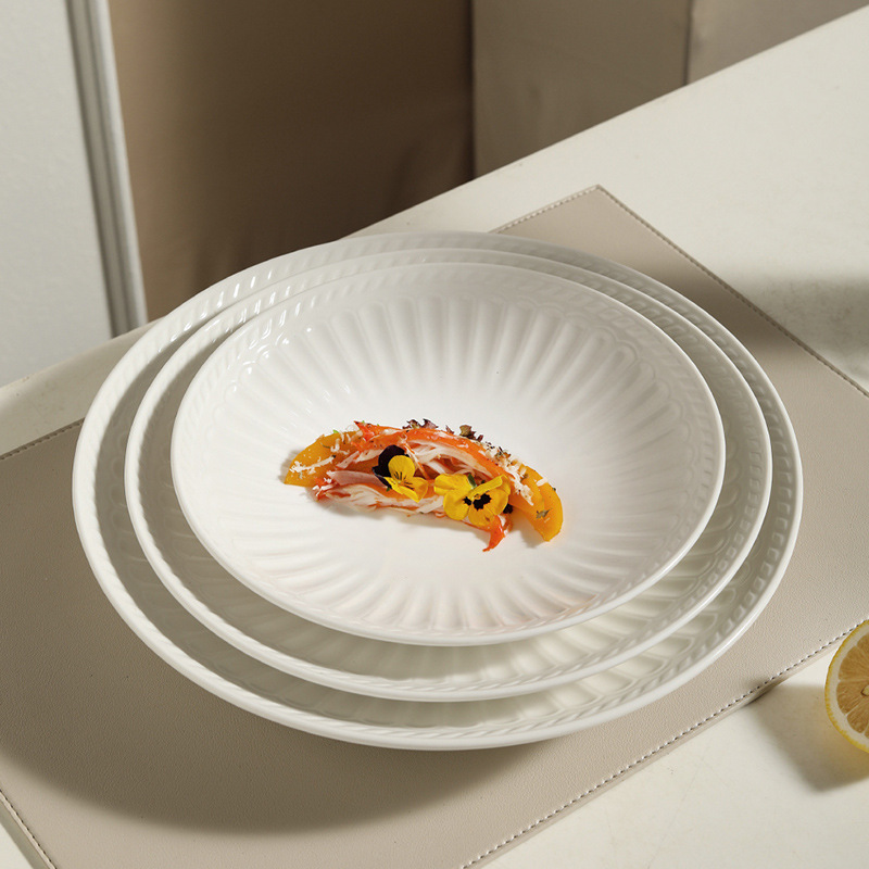 フランス式レリーフ陶磁器平皿料理皿ホテルレストラン専用皿パスタ皿高級感洋食皿卸売り