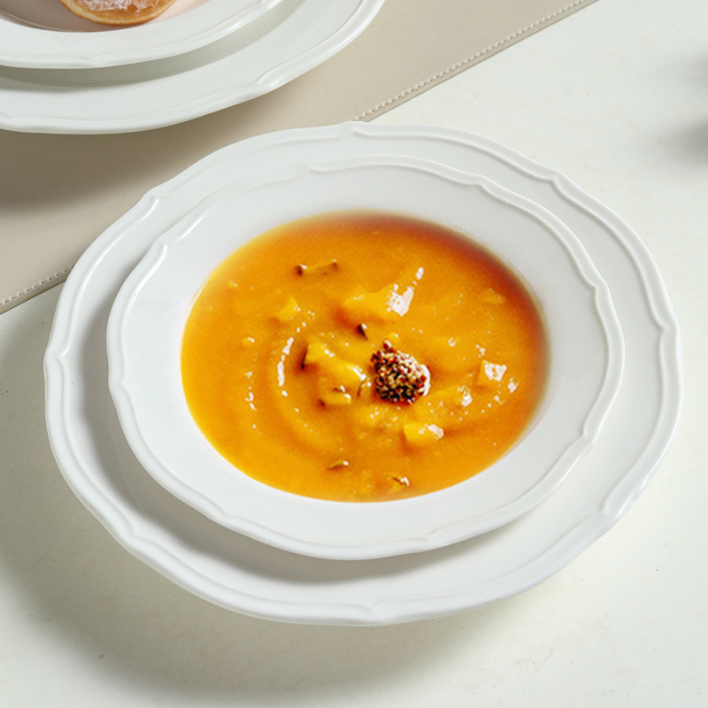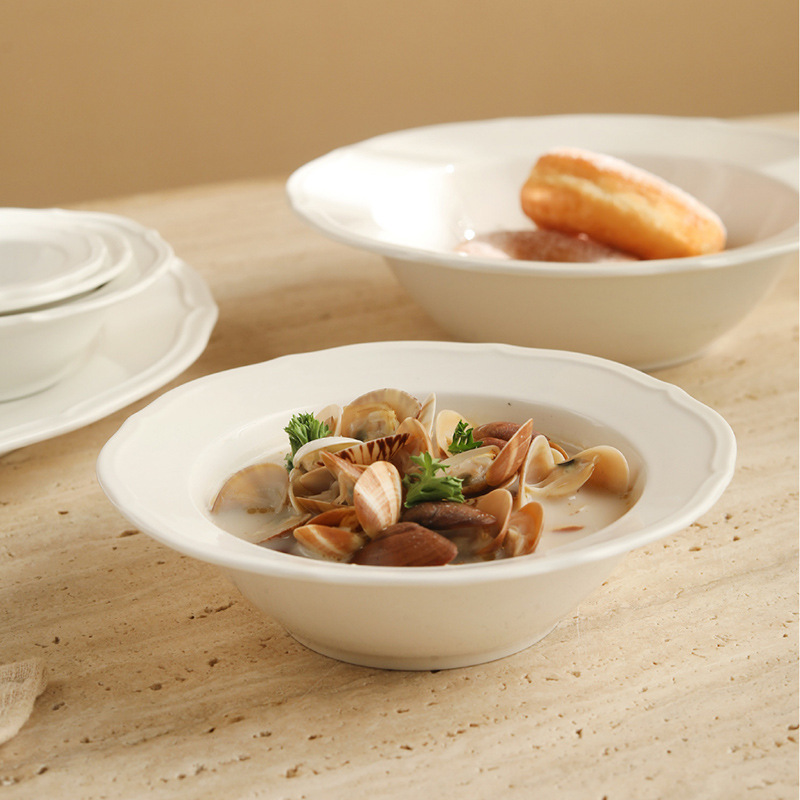 インススタイル フレンチレリーフレースプレート 純白セラミックスーププレート パスタ洋食プレート 深皿 デザートプレート サラダプレート