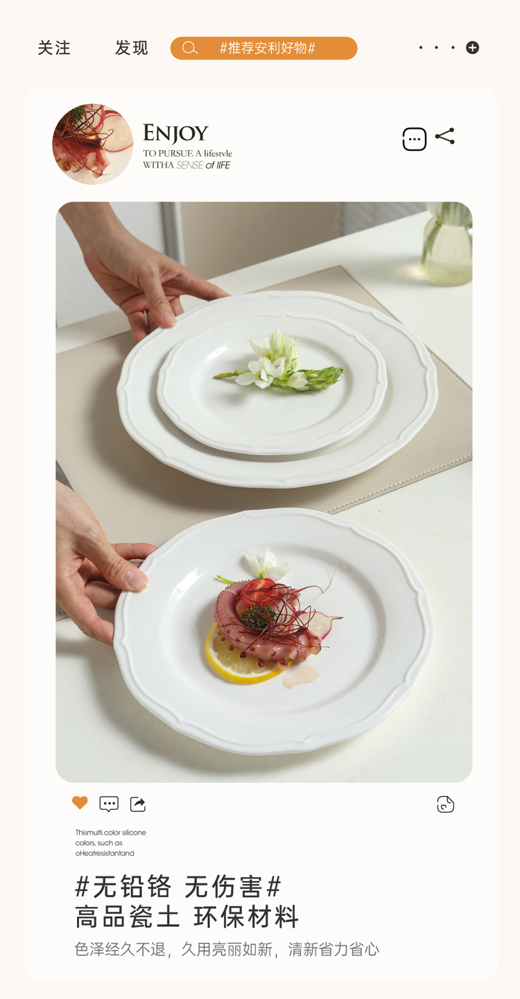 現物insフランスレトロレースレリーフ純白セラミック皿洋食デザート朝食皿家庭用高颜値