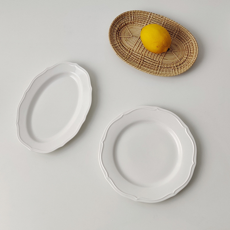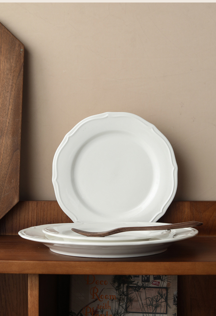インスタ風レトロレリーフラインレースプレート純白セラミックプレートフレンチレリーフサイド洋食プレートデザート朝食皿