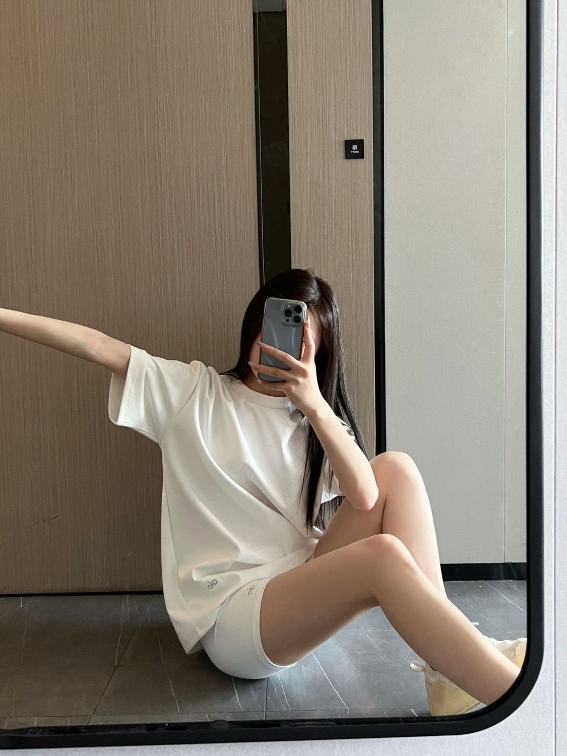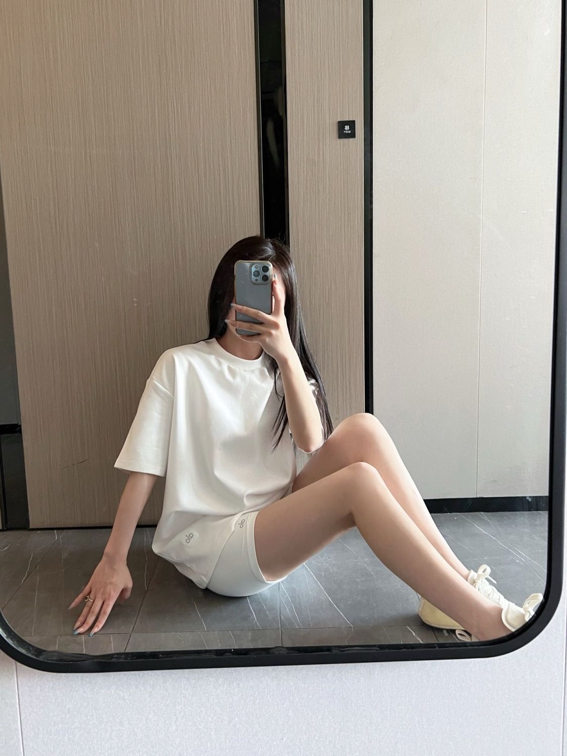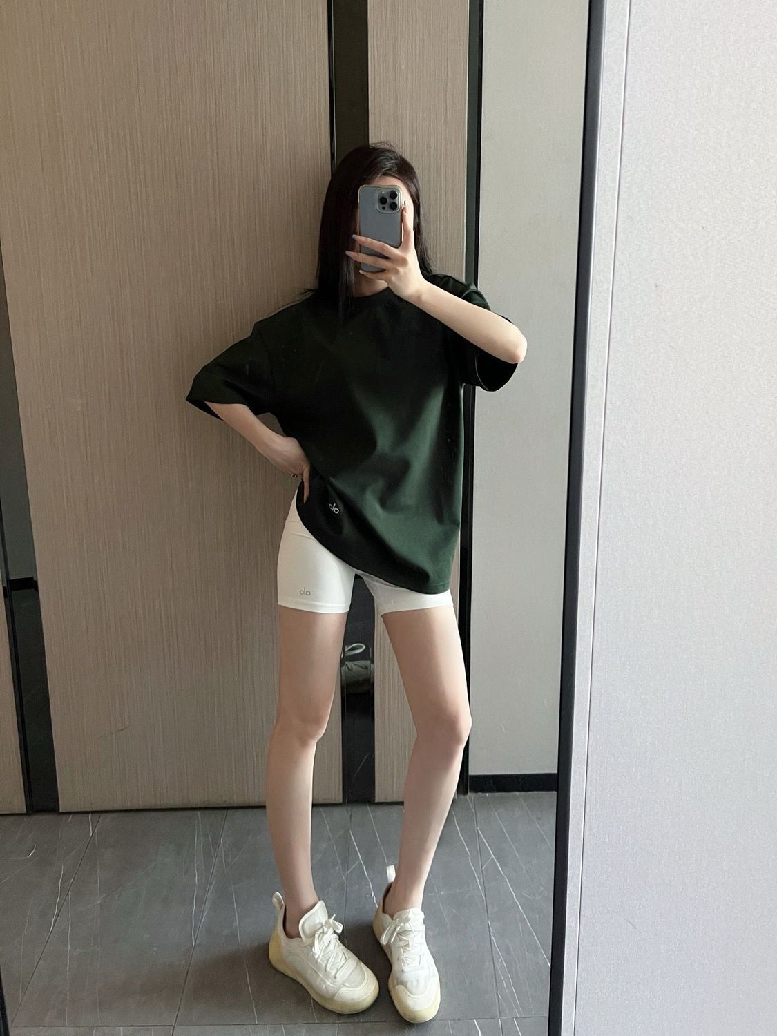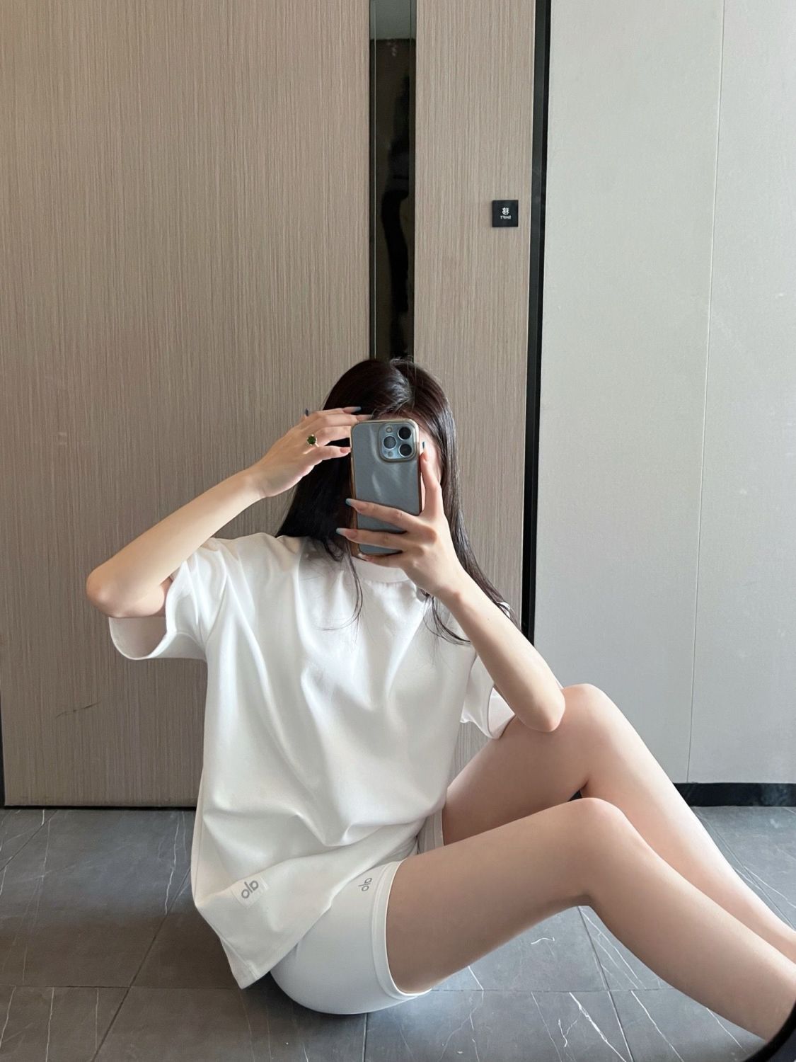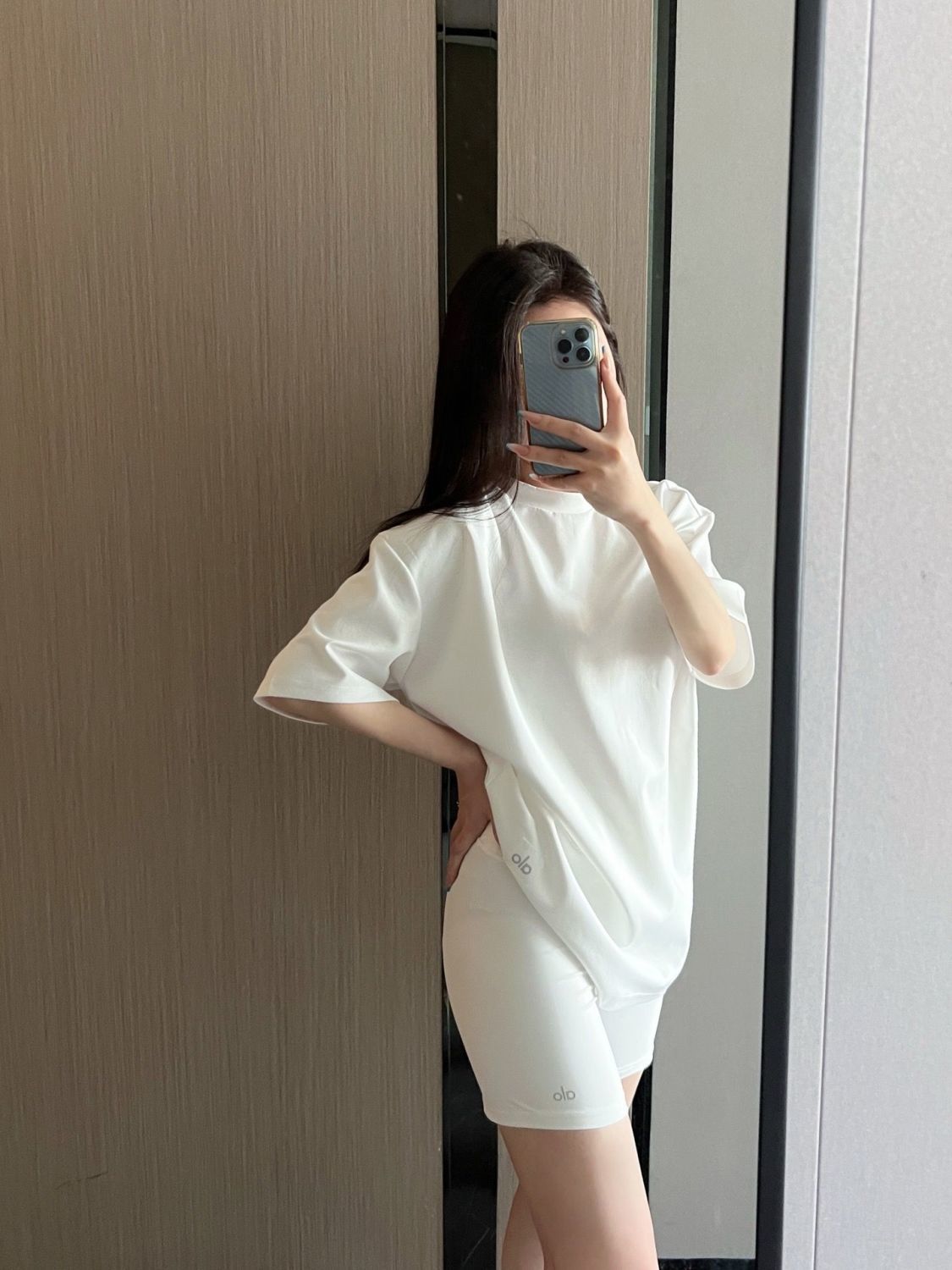 ALO 字母韩系2025春夏新款轻薄棉质松紧休闲运动瑜伽健身短裤女式