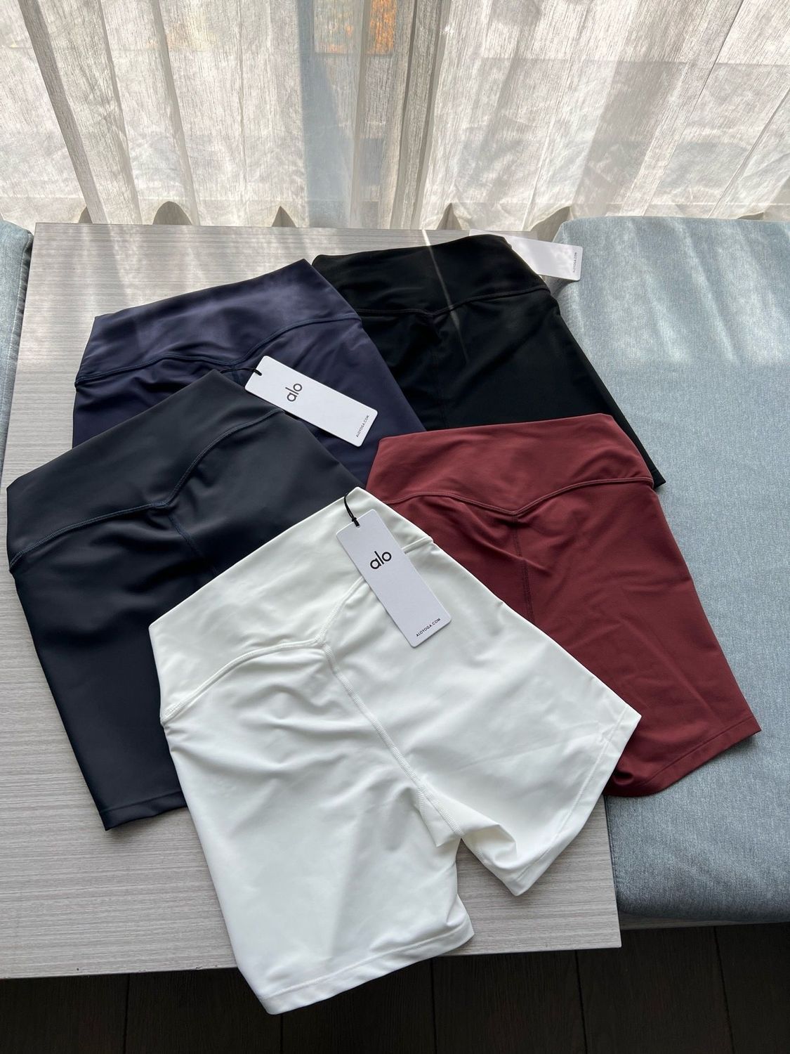 ALO スポーツスリムヒップリフティングオリジナルソリッドカラーヨガショーツ軽量タイトサイクリングパンツ高弾性 5 点パンツ女性用