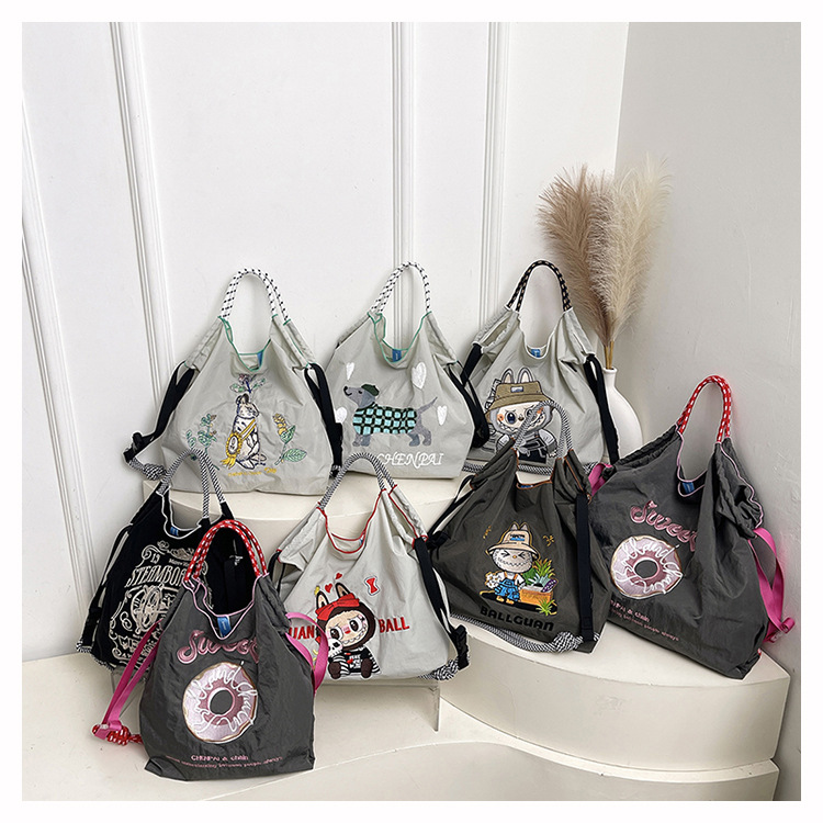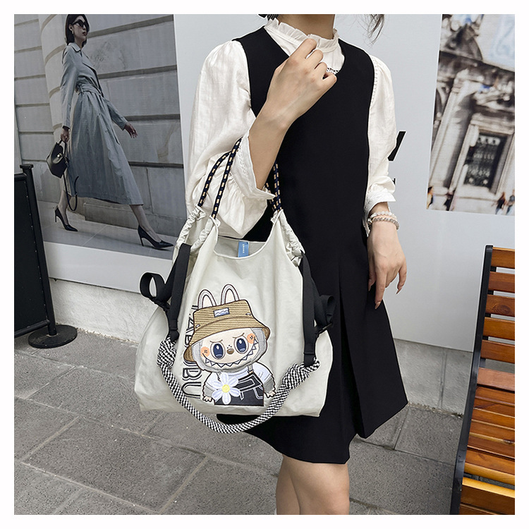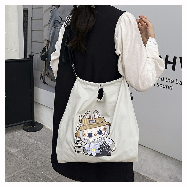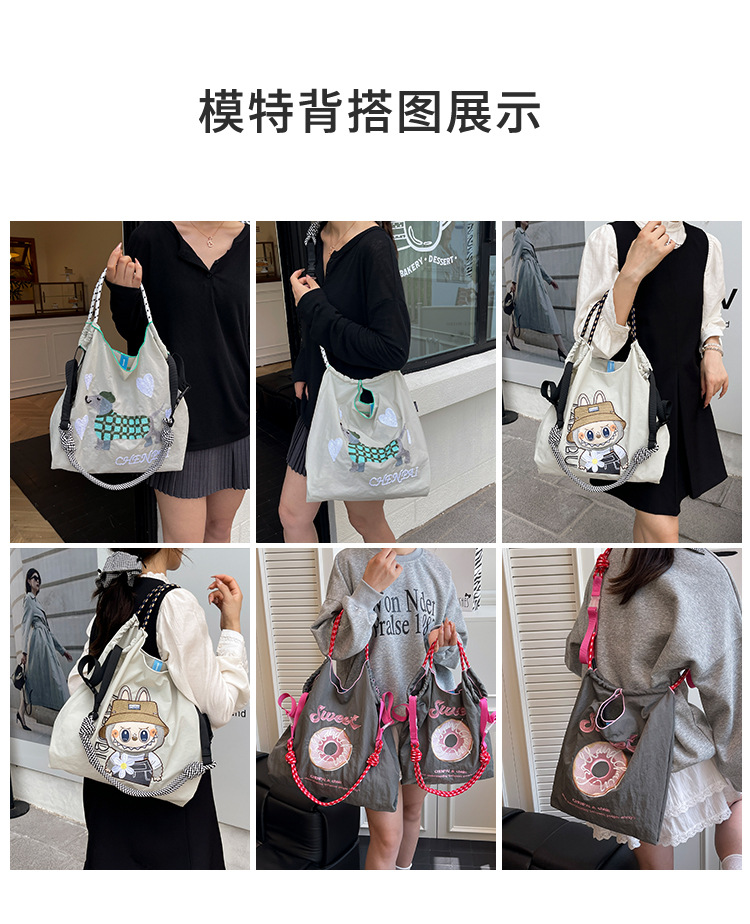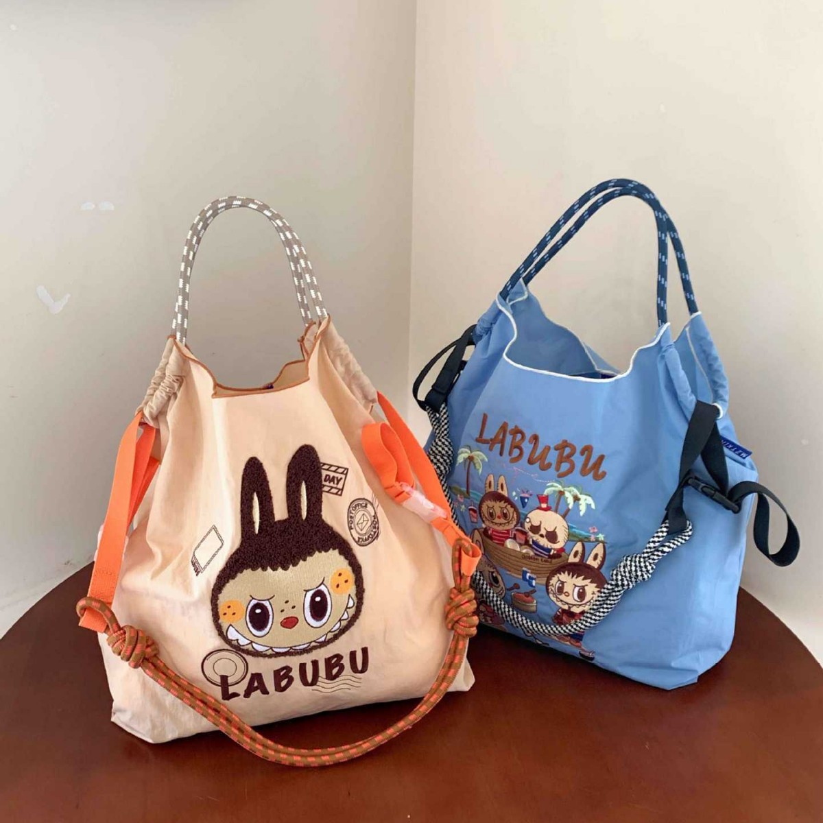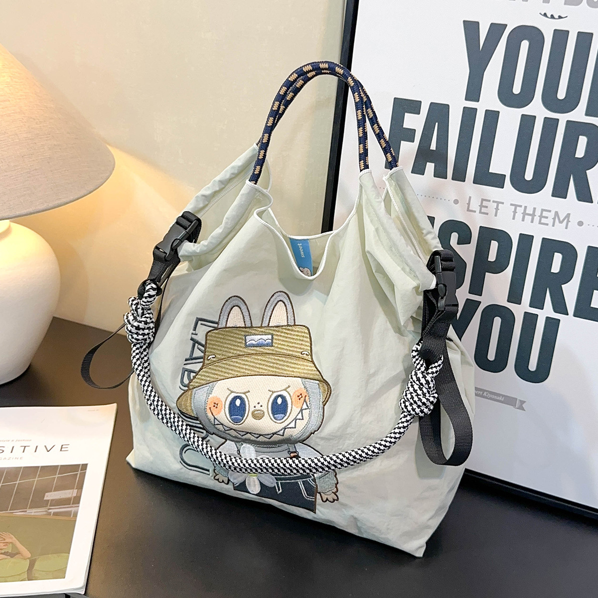 夏季新款日系刺绣labubu可爱单肩斜挎包托特包尼龙环保购物袋女包